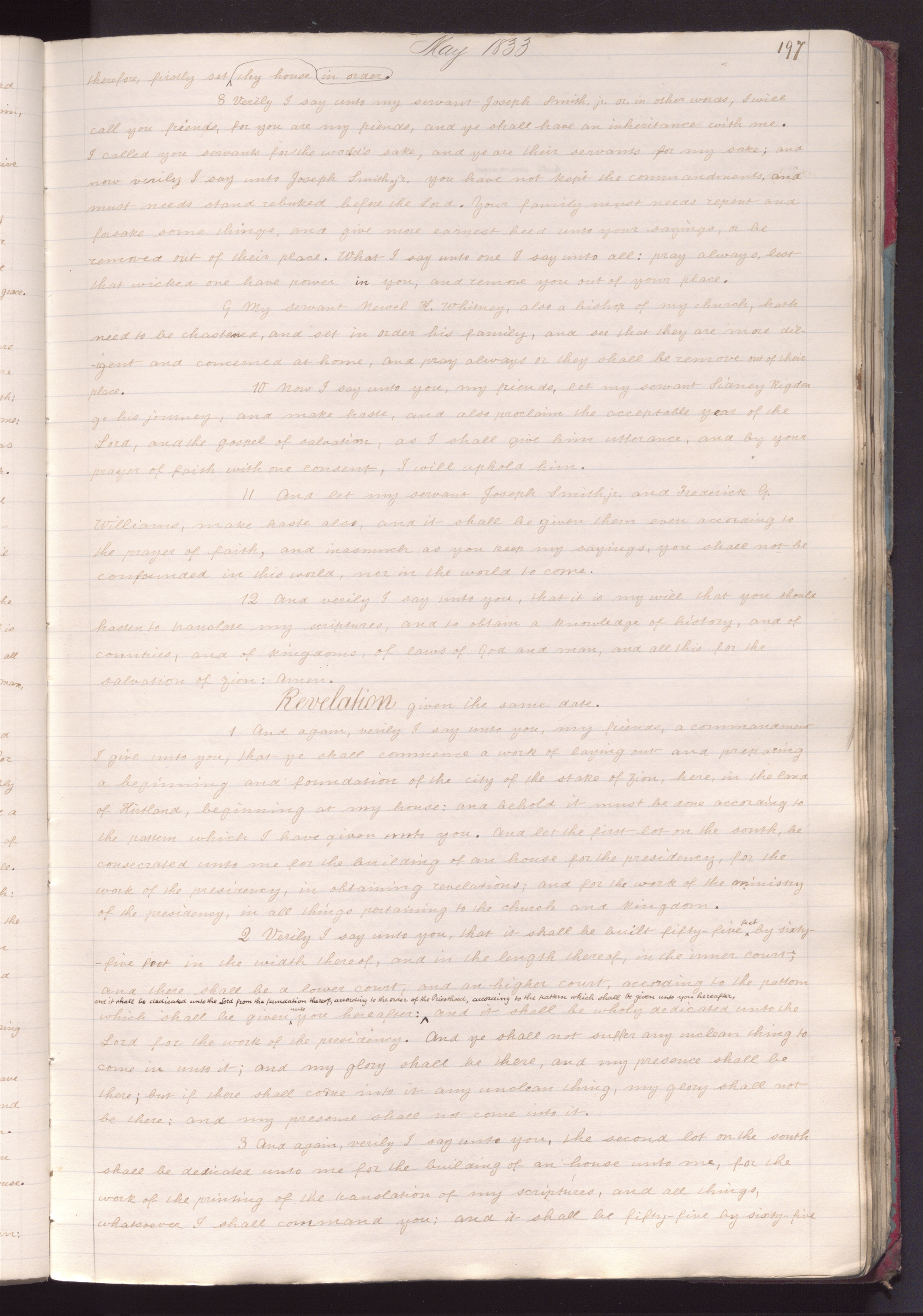 JS, History, 1838–1856, vol. A-2, created 4 Apr.–28 Nov. 1845 and 3–7 Aug. 1858; handwriting of , , , and ; 365 pages, plus seven pages of addenda; CHL. This is a copy of the first volume of a six-volume manuscript history of the church (JS History, 1838–1856, vol. A-1), and covers the period from 23 Dec. 1805 to 30 Aug. 1834. The copy also comprises four other volumes, labeled B-2, C-2, D-2, and E-2, and continues through 19 July 1843. The copy was discontinued 6 Aug. 1856 “by the advice of President ” (JS History, 1838–1856, vol. E-2, p. 83).