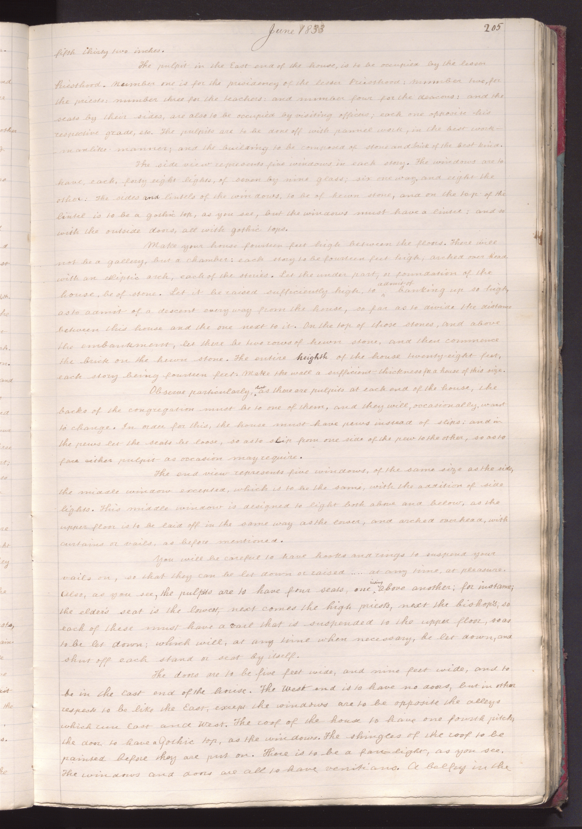 JS, History, 1838–1856, vol. A-2, created 4 Apr.–28 Nov. 1845 and 3–7 Aug. 1858; handwriting of , , , and ; 365 pages, plus seven pages of addenda; CHL. This is a copy of the first volume of a six-volume manuscript history of the church (JS History, 1838–1856, vol. A-1), and covers the period from 23 Dec. 1805 to 30 Aug. 1834. The copy also comprises four other volumes, labeled B-2, C-2, D-2, and E-2, and continues through 19 July 1843. The copy was discontinued 6 Aug. 1856 “by the advice of President ” (JS History, 1838–1856, vol. E-2, p. 83).