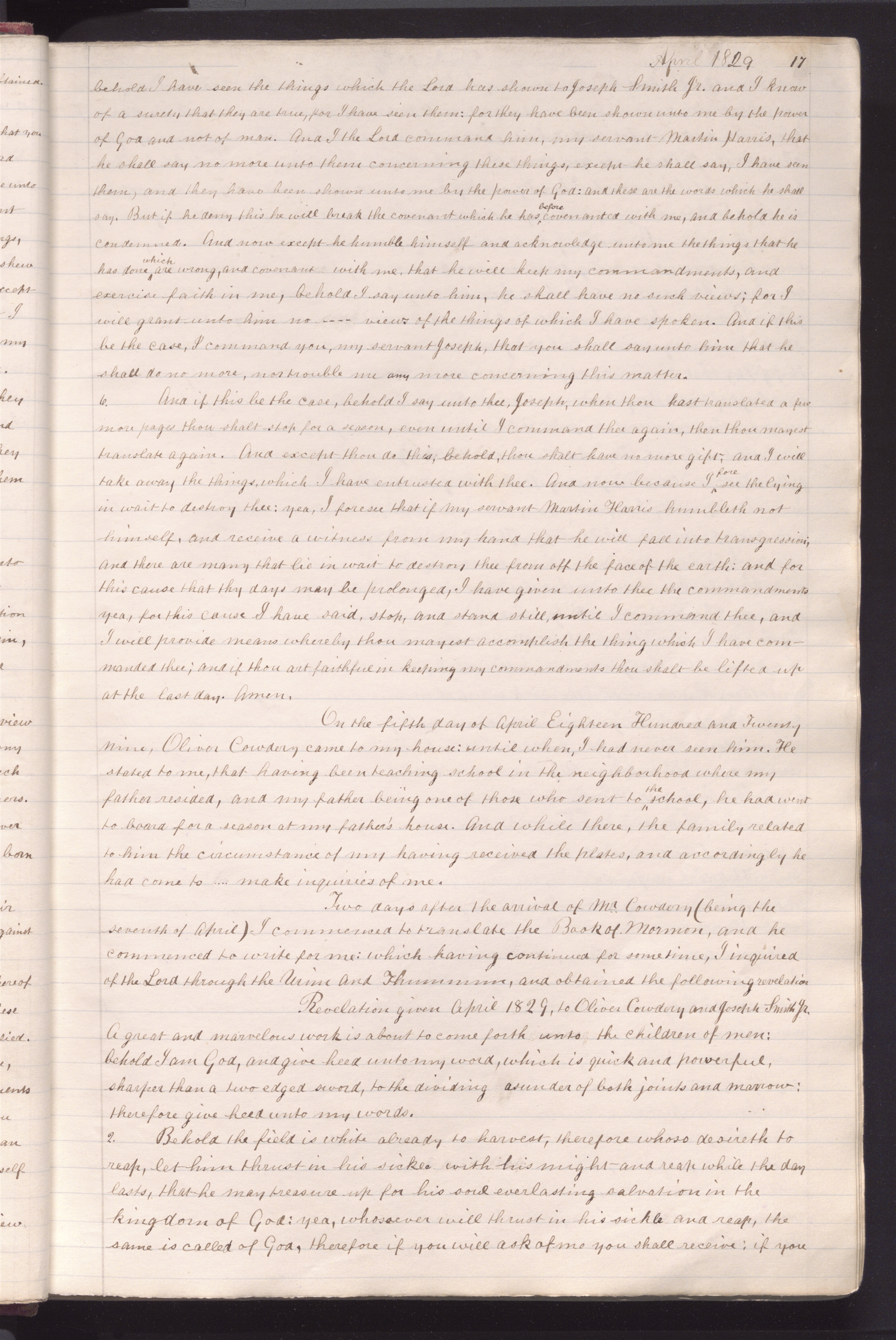 JS, History, 1838–1856, vol. A-2, created 4 Apr.–28 Nov. 1845 and 3–7 Aug. 1858; handwriting of , , , and ; 365 pages, plus seven pages of addenda; CHL. This is a copy of the first volume of a six-volume manuscript history of the church (JS History, 1838–1856, vol. A-1), and covers the period from 23 Dec. 1805 to 30 Aug. 1834. The copy also comprises four other volumes, labeled B-2, C-2, D-2, and E-2, and continues through 19 July 1843. The copy was discontinued 6 Aug. 1856 “by the advice of President ” (JS History, 1838–1856, vol. E-2, p. 83).