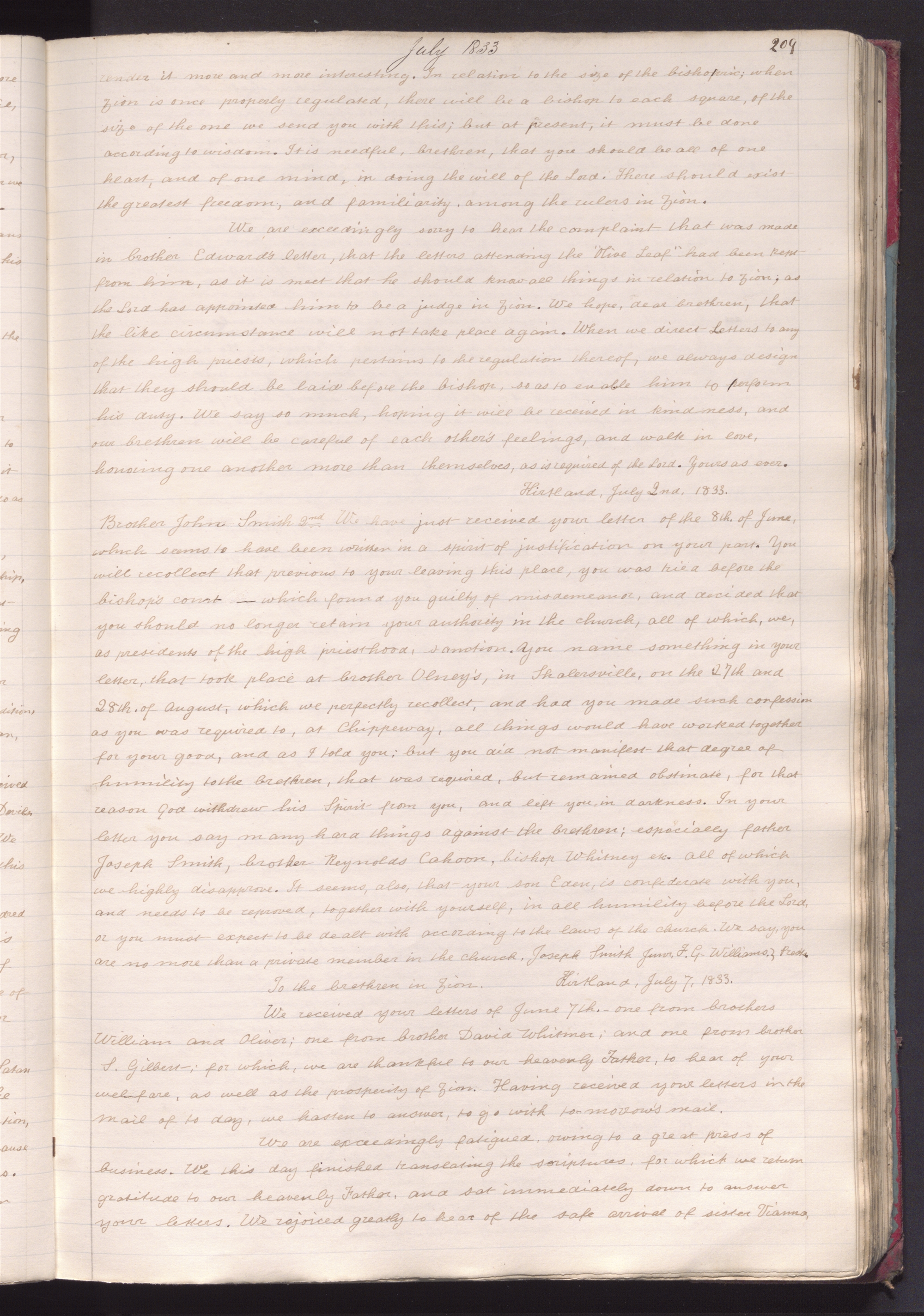JS, History, 1838–1856, vol. A-2, created 4 Apr.–28 Nov. 1845 and 3–7 Aug. 1858; handwriting of , , , and ; 365 pages, plus seven pages of addenda; CHL. This is a copy of the first volume of a six-volume manuscript history of the church (JS History, 1838–1856, vol. A-1), and covers the period from 23 Dec. 1805 to 30 Aug. 1834. The copy also comprises four other volumes, labeled B-2, C-2, D-2, and E-2, and continues through 19 July 1843. The copy was discontinued 6 Aug. 1856 “by the advice of President ” (JS History, 1838–1856, vol. E-2, p. 83).