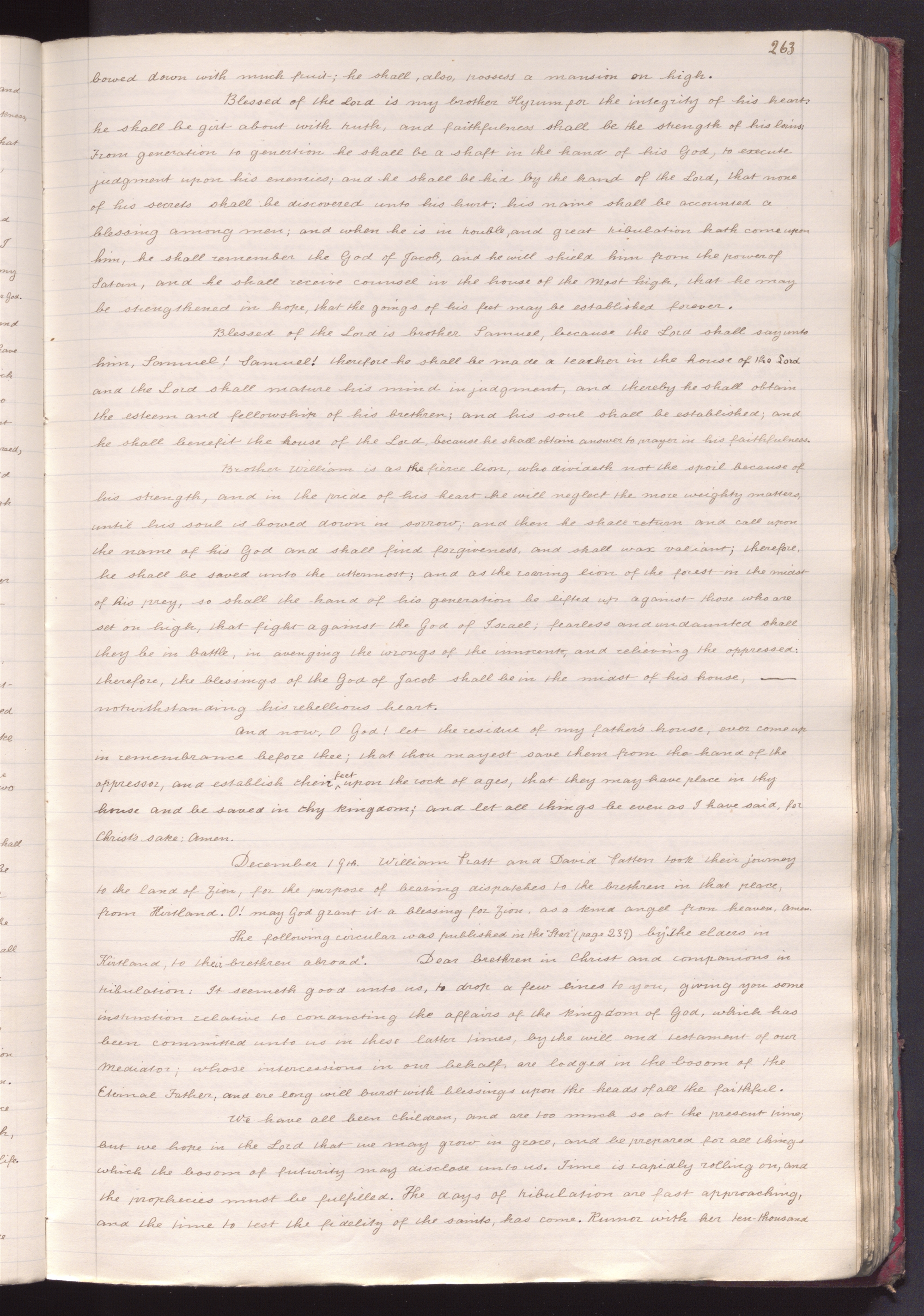 JS, History, 1838–1856, vol. A-2, created 4 Apr.–28 Nov. 1845 and 3–7 Aug. 1858; handwriting of , , , and ; 365 pages, plus seven pages of addenda; CHL. This is a copy of the first volume of a six-volume manuscript history of the church (JS History, 1838–1856, vol. A-1), and covers the period from 23 Dec. 1805 to 30 Aug. 1834. The copy also comprises four other volumes, labeled B-2, C-2, D-2, and E-2, and continues through 19 July 1843. The copy was discontinued 6 Aug. 1856 “by the advice of President ” (JS History, 1838–1856, vol. E-2, p. 83).