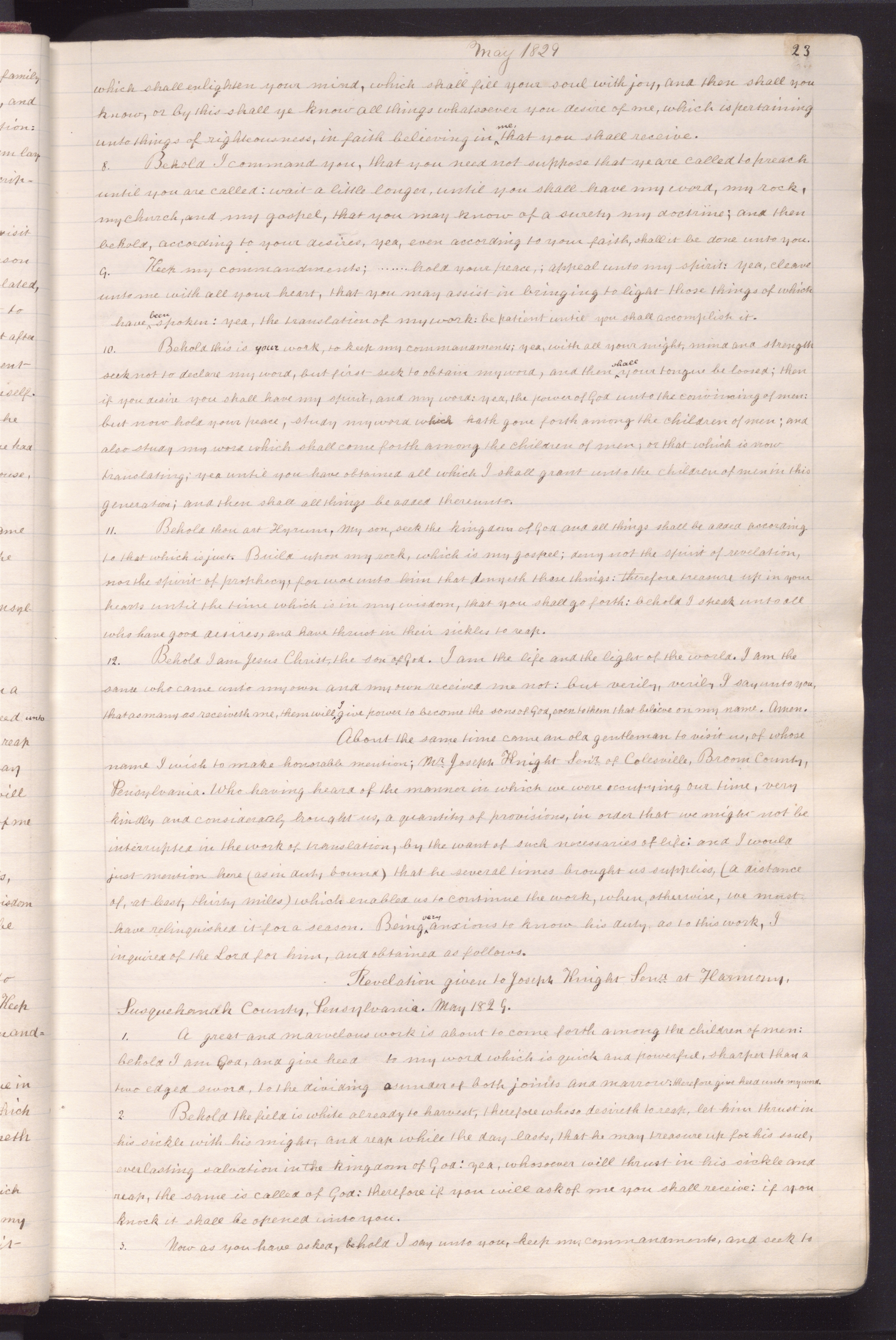 JS, History, 1838–1856, vol. A-2, created 4 Apr.–28 Nov. 1845 and 3–7 Aug. 1858; handwriting of , , , and ; 365 pages, plus seven pages of addenda; CHL. This is a copy of the first volume of a six-volume manuscript history of the church (JS History, 1838–1856, vol. A-1), and covers the period from 23 Dec. 1805 to 30 Aug. 1834. The copy also comprises four other volumes, labeled B-2, C-2, D-2, and E-2, and continues through 19 July 1843. The copy was discontinued 6 Aug. 1856 “by the advice of President ” (JS History, 1838–1856, vol. E-2, p. 83).