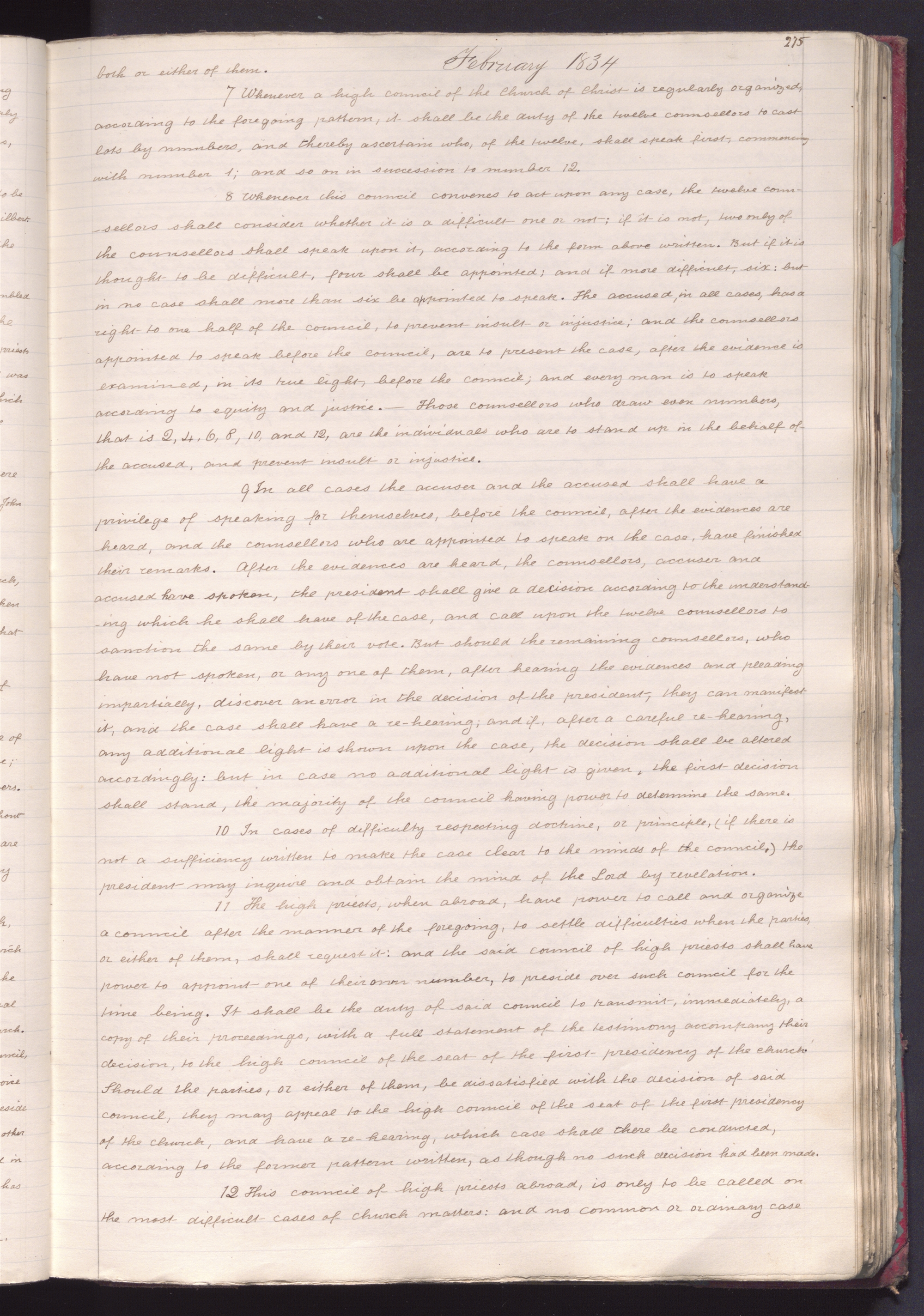 JS, History, 1838–1856, vol. A-2, created 4 Apr.–28 Nov. 1845 and 3–7 Aug. 1858; handwriting of , , , and ; 365 pages, plus seven pages of addenda; CHL. This is a copy of the first volume of a six-volume manuscript history of the church (JS History, 1838–1856, vol. A-1), and covers the period from 23 Dec. 1805 to 30 Aug. 1834. The copy also comprises four other volumes, labeled B-2, C-2, D-2, and E-2, and continues through 19 July 1843. The copy was discontinued 6 Aug. 1856 “by the advice of President ” (JS History, 1838–1856, vol. E-2, p. 83).