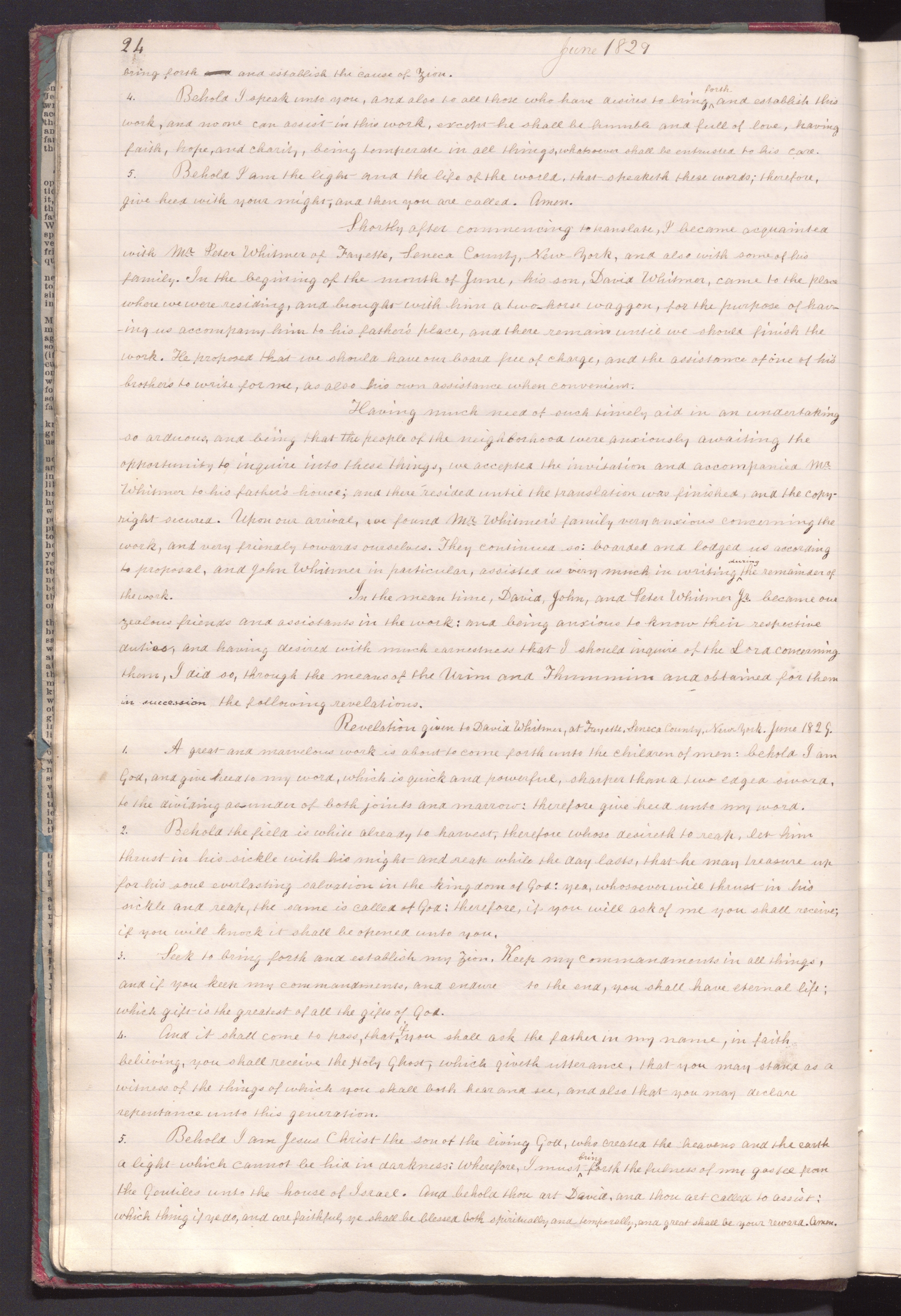 JS, History, 1838–1856, vol. A-2, created 4 Apr.–28 Nov. 1845 and 3–7 Aug. 1858; handwriting of , , , and ; 365 pages, plus seven pages of addenda; CHL. This is a copy of the first volume of a six-volume manuscript history of the church (JS History, 1838–1856, vol. A-1), and covers the period from 23 Dec. 1805 to 30 Aug. 1834. The copy also comprises four other volumes, labeled B-2, C-2, D-2, and E-2, and continues through 19 July 1843. The copy was discontinued 6 Aug. 1856 “by the advice of President ” (JS History, 1838–1856, vol. E-2, p. 83).