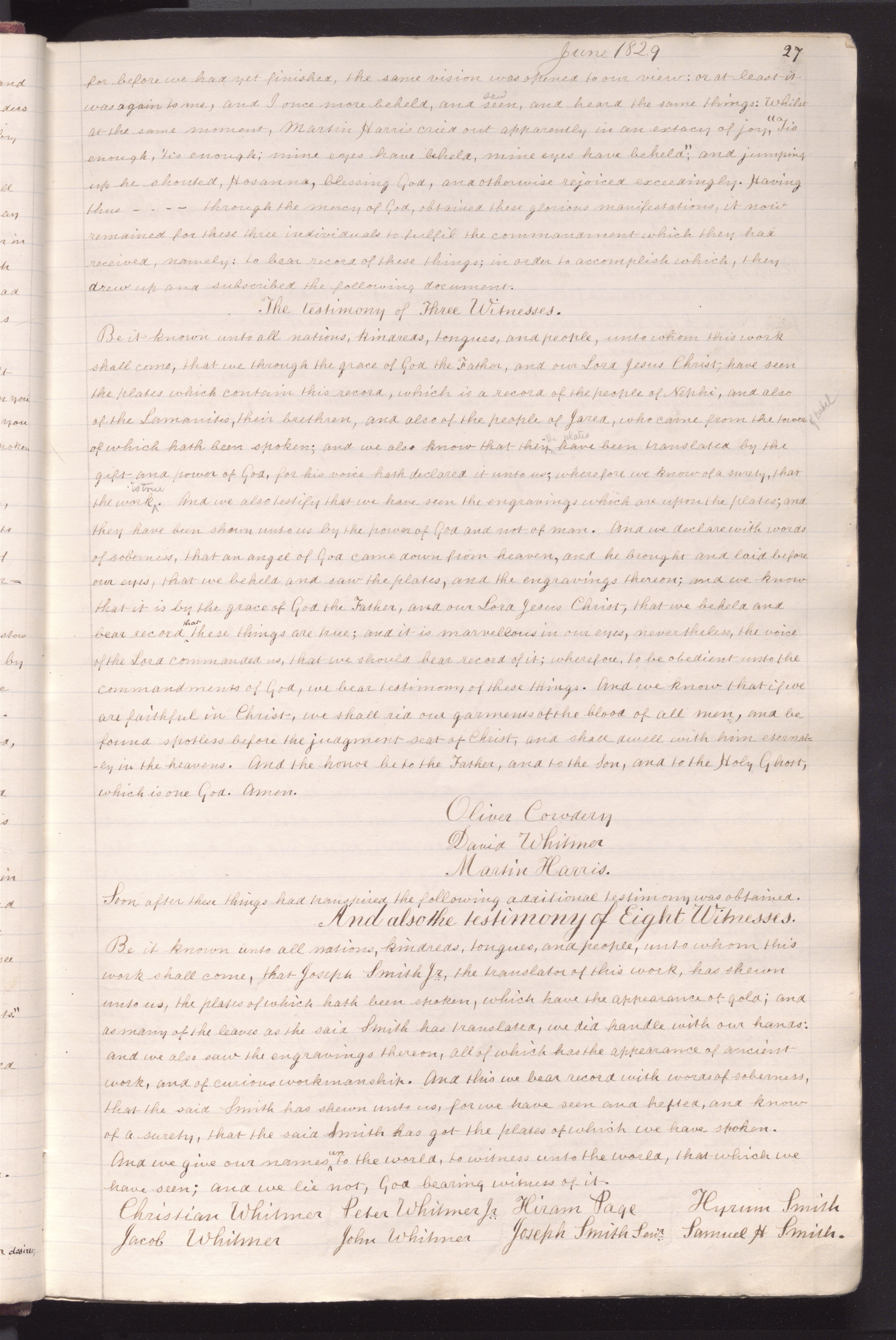 JS, History, 1838–1856, vol. A-2, created 4 Apr.–28 Nov. 1845 and 3–7 Aug. 1858; handwriting of , , , and ; 365 pages, plus seven pages of addenda; CHL. This is a copy of the first volume of a six-volume manuscript history of the church (JS History, 1838–1856, vol. A-1), and covers the period from 23 Dec. 1805 to 30 Aug. 1834. The copy also comprises four other volumes, labeled B-2, C-2, D-2, and E-2, and continues through 19 July 1843. The copy was discontinued 6 Aug. 1856 “by the advice of President ” (JS History, 1838–1856, vol. E-2, p. 83).