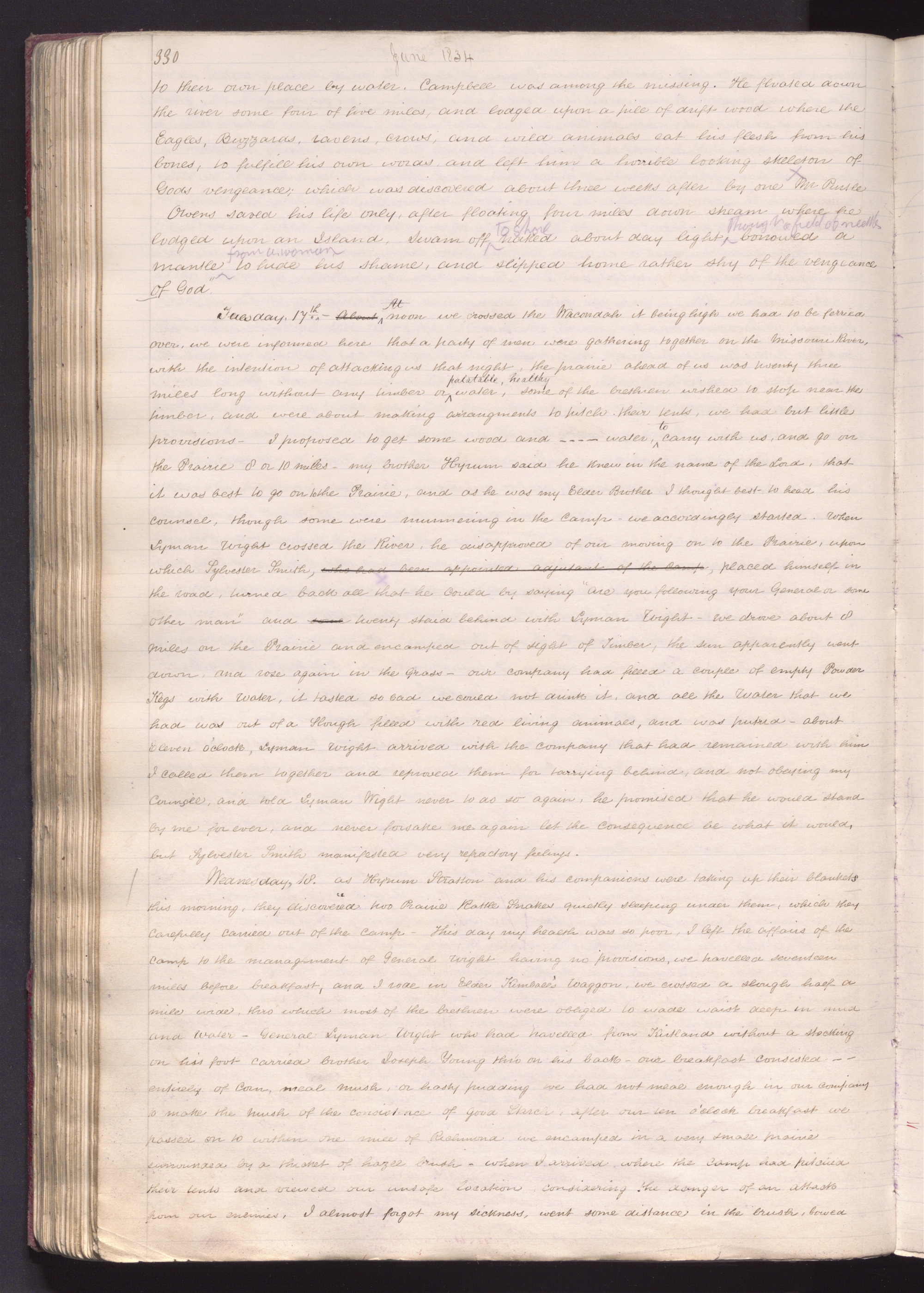 JS, History, 1838–1856, vol. A-2, created 4 Apr.–28 Nov. 1845 and 3–7 Aug. 1858; handwriting of , , , and ; 365 pages, plus seven pages of addenda; CHL. This is a copy of the first volume of a six-volume manuscript history of the church (JS History, 1838–1856, vol. A-1), and covers the period from 23 Dec. 1805 to 30 Aug. 1834. The copy also comprises four other volumes, labeled B-2, C-2, D-2, and E-2, and continues through 19 July 1843. The copy was discontinued 6 Aug. 1856 “by the advice of President ” (JS History, 1838–1856, vol. E-2, p. 83).