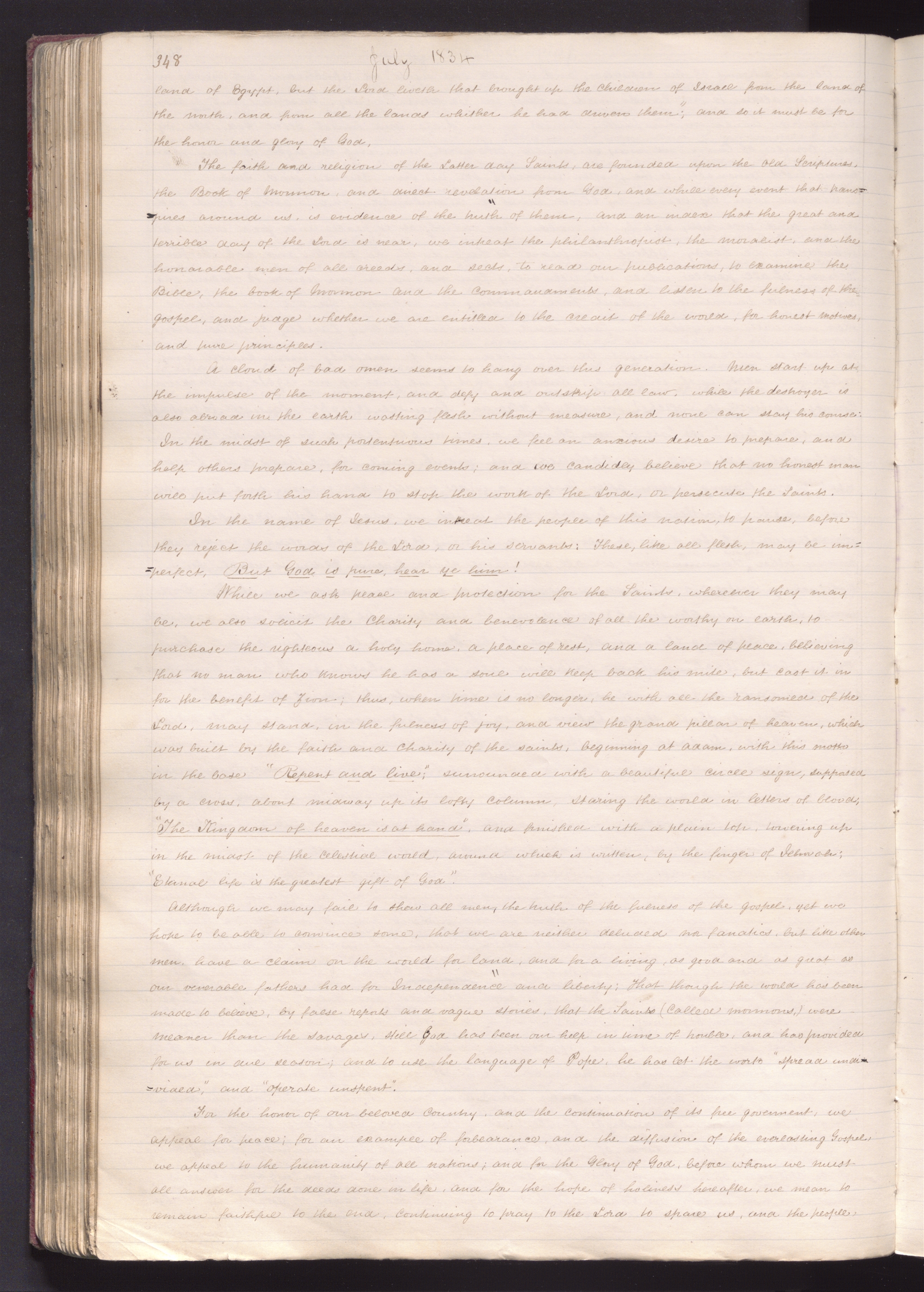 JS, History, 1838–1856, vol. A-2, created 4 Apr.–28 Nov. 1845 and 3–7 Aug. 1858; handwriting of , , , and ; 365 pages, plus seven pages of addenda; CHL. This is a copy of the first volume of a six-volume manuscript history of the church (JS History, 1838–1856, vol. A-1), and covers the period from 23 Dec. 1805 to 30 Aug. 1834. The copy also comprises four other volumes, labeled B-2, C-2, D-2, and E-2, and continues through 19 July 1843. The copy was discontinued 6 Aug. 1856 “by the advice of President ” (JS History, 1838–1856, vol. E-2, p. 83).