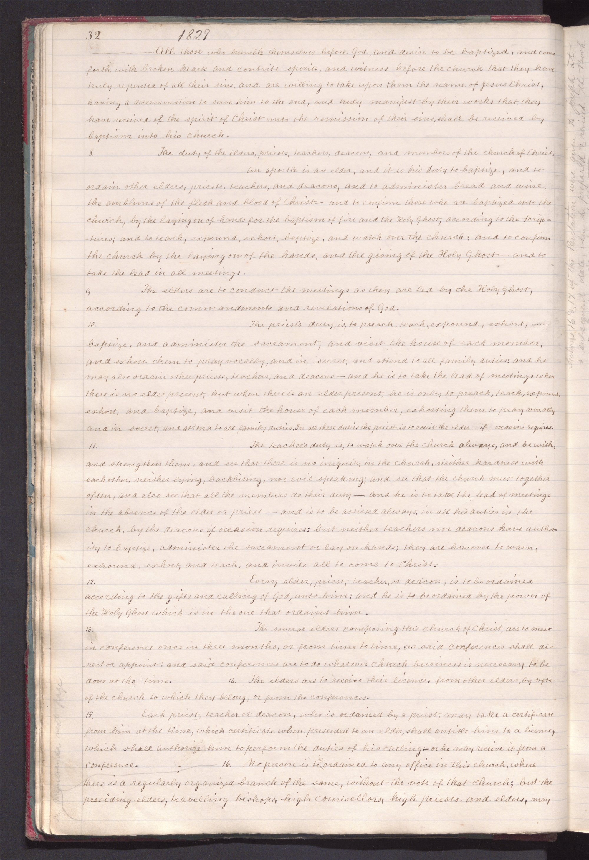 JS, History, 1838–1856, vol. A-2, created 4 Apr.–28 Nov. 1845 and 3–7 Aug. 1858; handwriting of , , , and ; 365 pages, plus seven pages of addenda; CHL. This is a copy of the first volume of a six-volume manuscript history of the church (JS History, 1838–1856, vol. A-1), and covers the period from 23 Dec. 1805 to 30 Aug. 1834. The copy also comprises four other volumes, labeled B-2, C-2, D-2, and E-2, and continues through 19 July 1843. The copy was discontinued 6 Aug. 1856 “by the advice of President ” (JS History, 1838–1856, vol. E-2, p. 83).