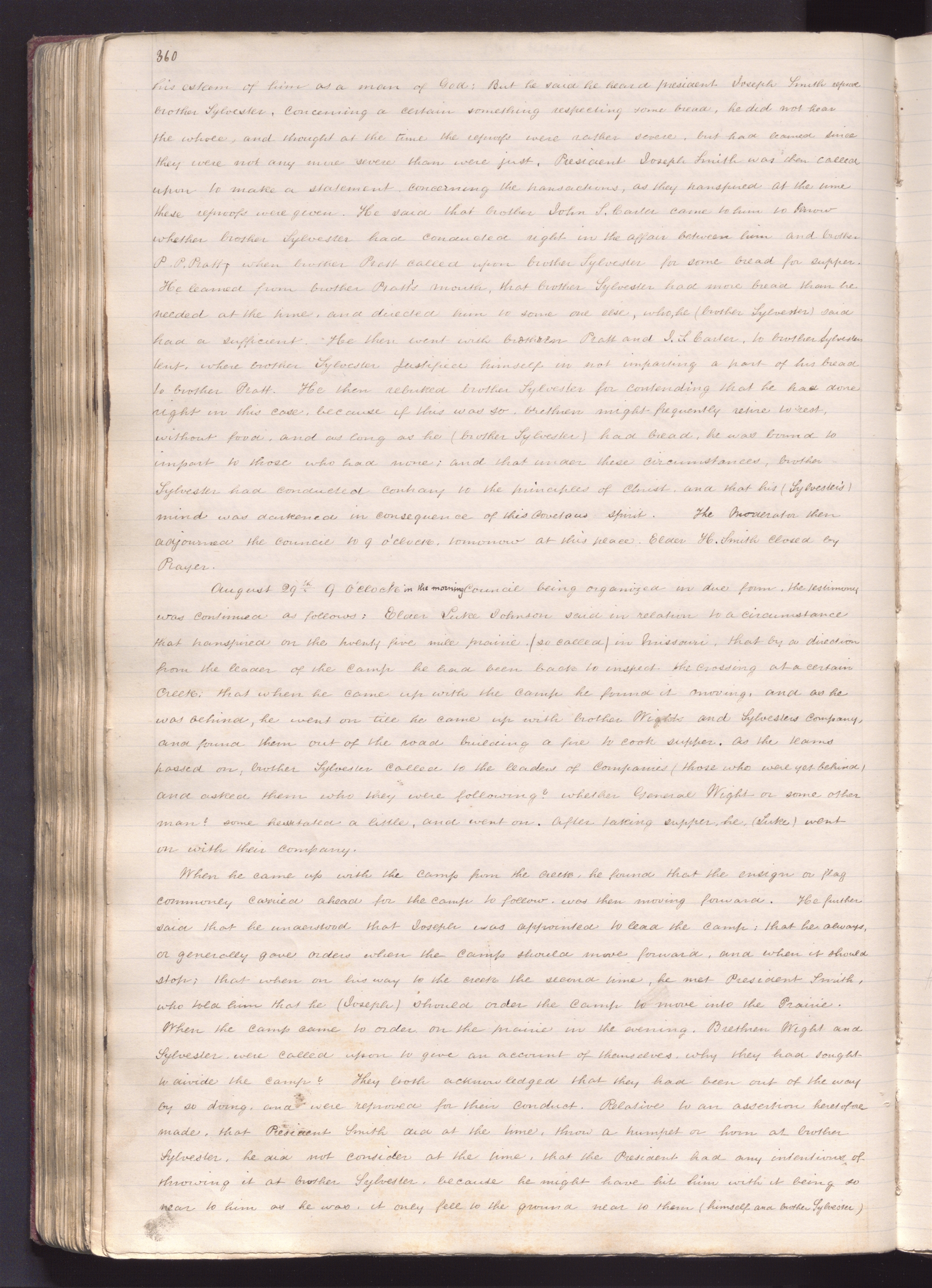 JS, History, 1838–1856, vol. A-2, created 4 Apr.–28 Nov. 1845 and 3–7 Aug. 1858; handwriting of , , , and ; 365 pages, plus seven pages of addenda; CHL. This is a copy of the first volume of a six-volume manuscript history of the church (JS History, 1838–1856, vol. A-1), and covers the period from 23 Dec. 1805 to 30 Aug. 1834. The copy also comprises four other volumes, labeled B-2, C-2, D-2, and E-2, and continues through 19 July 1843. The copy was discontinued 6 Aug. 1856 “by the advice of President ” (JS History, 1838–1856, vol. E-2, p. 83).