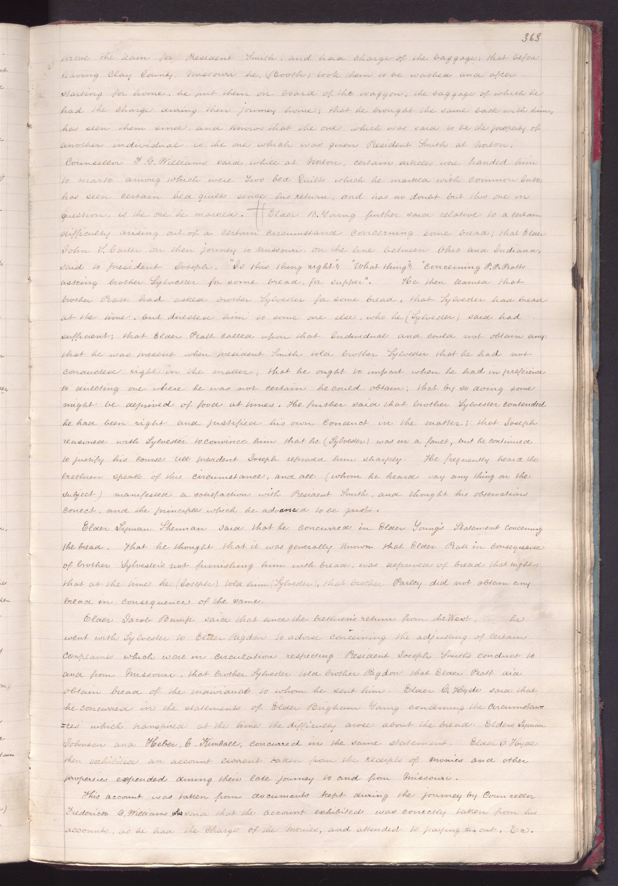 JS, History, 1838–1856, vol. A-2, created 4 Apr.–28 Nov. 1845 and 3–7 Aug. 1858; handwriting of , , , and ; 365 pages, plus seven pages of addenda; CHL. This is a copy of the first volume of a six-volume manuscript history of the church (JS History, 1838–1856, vol. A-1), and covers the period from 23 Dec. 1805 to 30 Aug. 1834. The copy also comprises four other volumes, labeled B-2, C-2, D-2, and E-2, and continues through 19 July 1843. The copy was discontinued 6 Aug. 1856 “by the advice of President ” (JS History, 1838–1856, vol. E-2, p. 83).