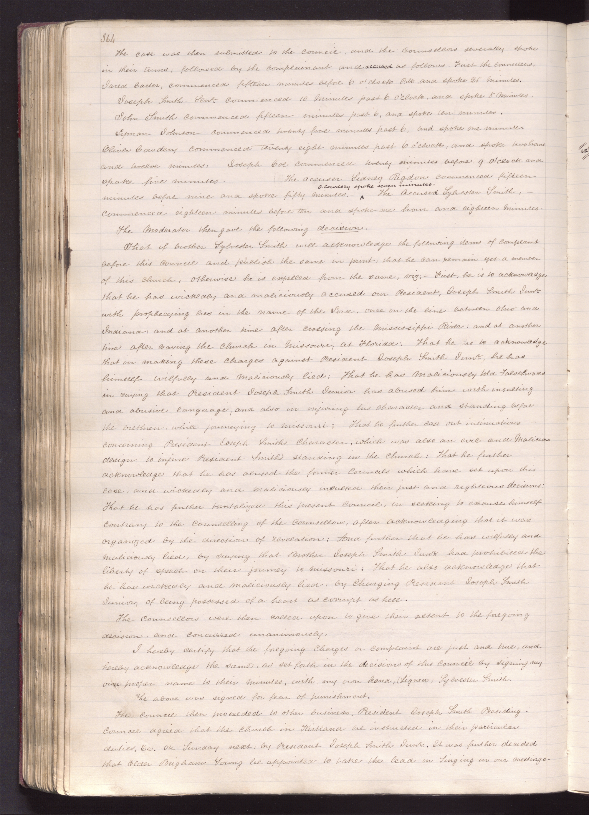JS, History, 1838–1856, vol. A-2, created 4 Apr.–28 Nov. 1845 and 3–7 Aug. 1858; handwriting of , , , and ; 365 pages, plus seven pages of addenda; CHL. This is a copy of the first volume of a six-volume manuscript history of the church (JS History, 1838–1856, vol. A-1), and covers the period from 23 Dec. 1805 to 30 Aug. 1834. The copy also comprises four other volumes, labeled B-2, C-2, D-2, and E-2, and continues through 19 July 1843. The copy was discontinued 6 Aug. 1856 “by the advice of President ” (JS History, 1838–1856, vol. E-2, p. 83).