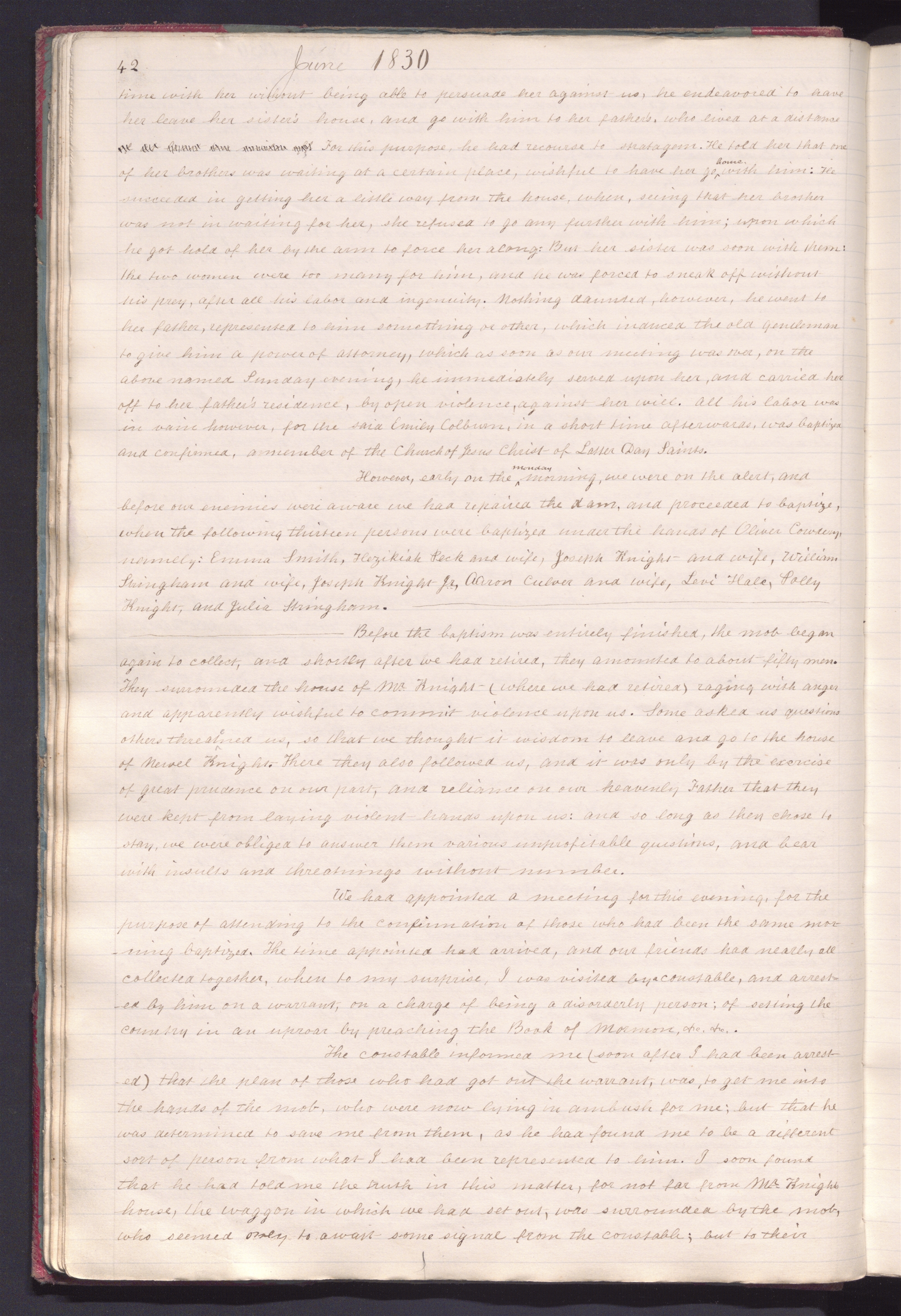 JS, History, 1838–1856, vol. A-2, created 4 Apr.–28 Nov. 1845 and 3–7 Aug. 1858; handwriting of , , , and ; 365 pages, plus seven pages of addenda; CHL. This is a copy of the first volume of a six-volume manuscript history of the church (JS History, 1838–1856, vol. A-1), and covers the period from 23 Dec. 1805 to 30 Aug. 1834. The copy also comprises four other volumes, labeled B-2, C-2, D-2, and E-2, and continues through 19 July 1843. The copy was discontinued 6 Aug. 1856 “by the advice of President ” (JS History, 1838–1856, vol. E-2, p. 83).