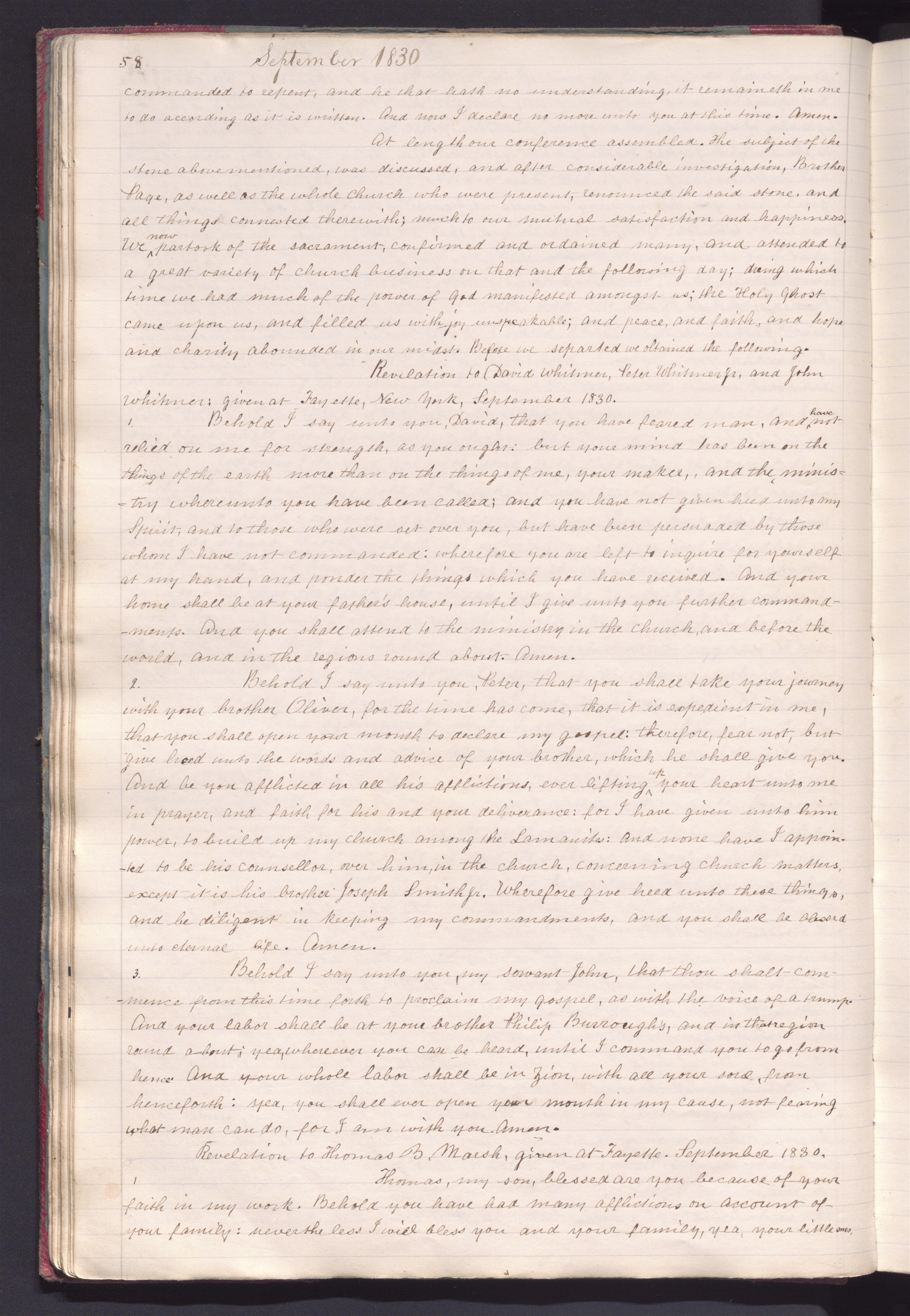 JS, History, 1838–1856, vol. A-2, created 4 Apr.–28 Nov. 1845 and 3–7 Aug. 1858; handwriting of , , , and ; 365 pages, plus seven pages of addenda; CHL. This is a copy of the first volume of a six-volume manuscript history of the church (JS History, 1838–1856, vol. A-1), and covers the period from 23 Dec. 1805 to 30 Aug. 1834. The copy also comprises four other volumes, labeled B-2, C-2, D-2, and E-2, and continues through 19 July 1843. The copy was discontinued 6 Aug. 1856 “by the advice of President ” (JS History, 1838–1856, vol. E-2, p. 83).