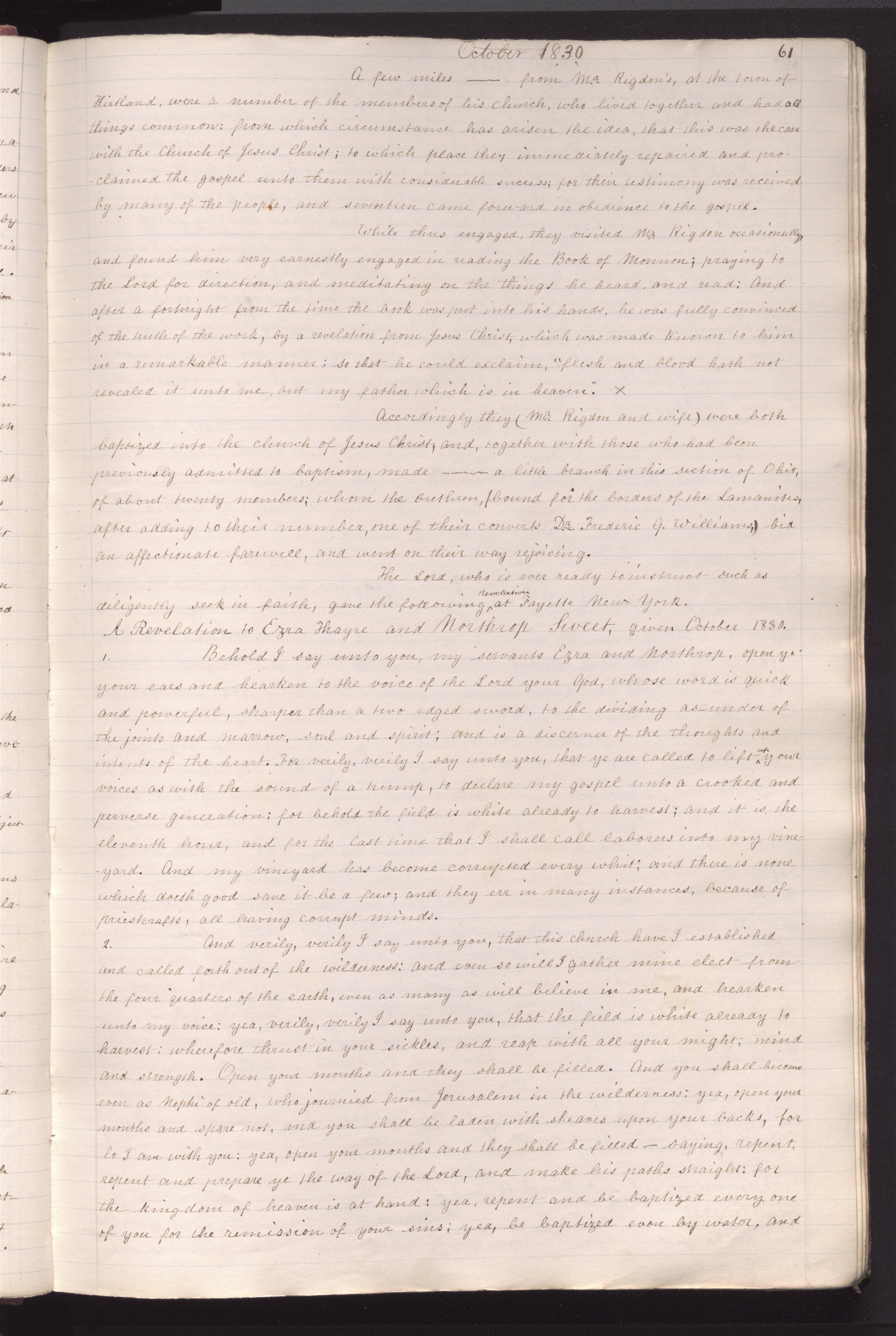 JS, History, 1838–1856, vol. A-2, created 4 Apr.–28 Nov. 1845 and 3–7 Aug. 1858; handwriting of , , , and ; 365 pages, plus seven pages of addenda; CHL. This is a copy of the first volume of a six-volume manuscript history of the church (JS History, 1838–1856, vol. A-1), and covers the period from 23 Dec. 1805 to 30 Aug. 1834. The copy also comprises four other volumes, labeled B-2, C-2, D-2, and E-2, and continues through 19 July 1843. The copy was discontinued 6 Aug. 1856 “by the advice of President ” (JS History, 1838–1856, vol. E-2, p. 83).