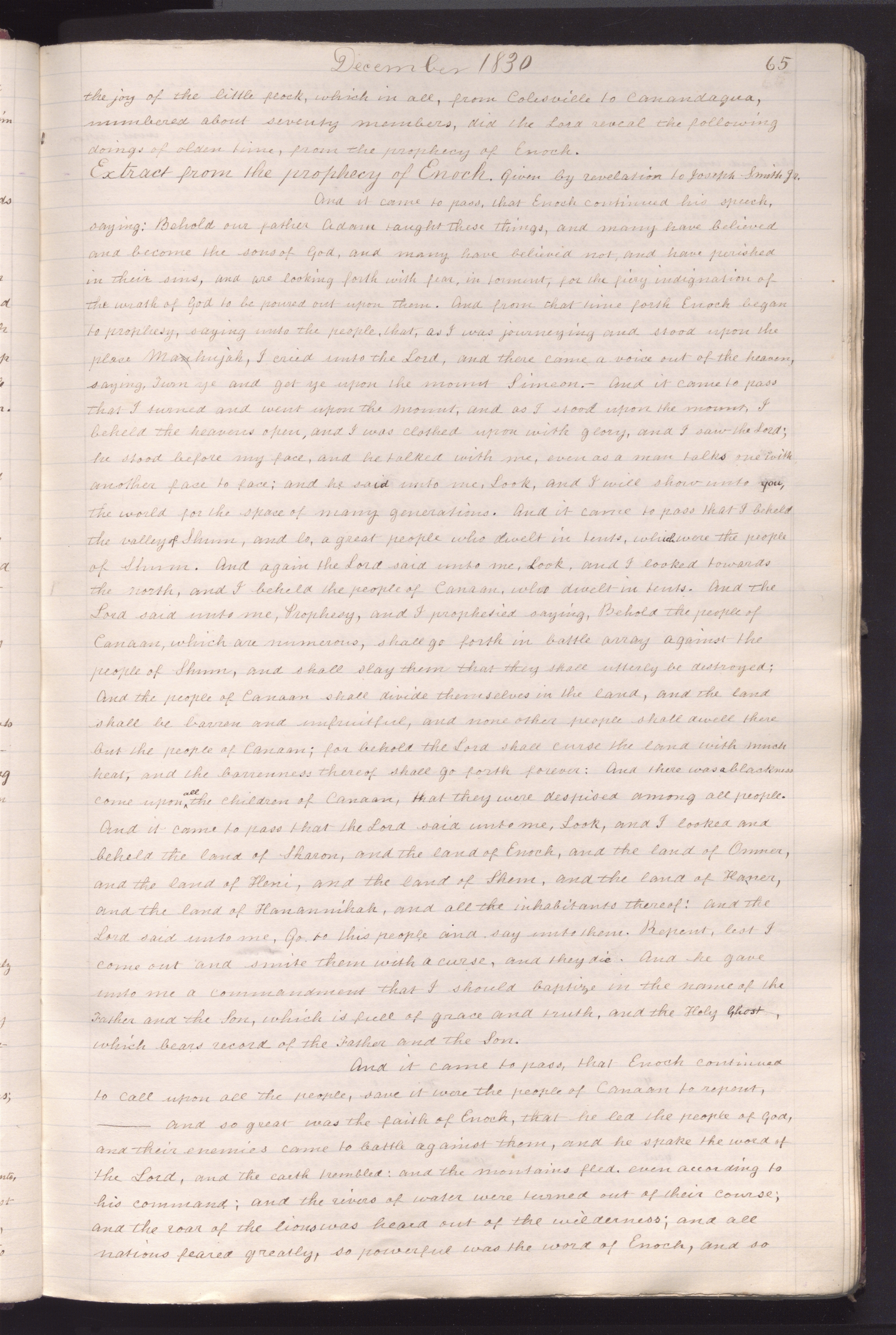 JS, History, 1838–1856, vol. A-2, created 4 Apr.–28 Nov. 1845 and 3–7 Aug. 1858; handwriting of , , , and ; 365 pages, plus seven pages of addenda; CHL. This is a copy of the first volume of a six-volume manuscript history of the church (JS History, 1838–1856, vol. A-1), and covers the period from 23 Dec. 1805 to 30 Aug. 1834. The copy also comprises four other volumes, labeled B-2, C-2, D-2, and E-2, and continues through 19 July 1843. The copy was discontinued 6 Aug. 1856 “by the advice of President ” (JS History, 1838–1856, vol. E-2, p. 83).