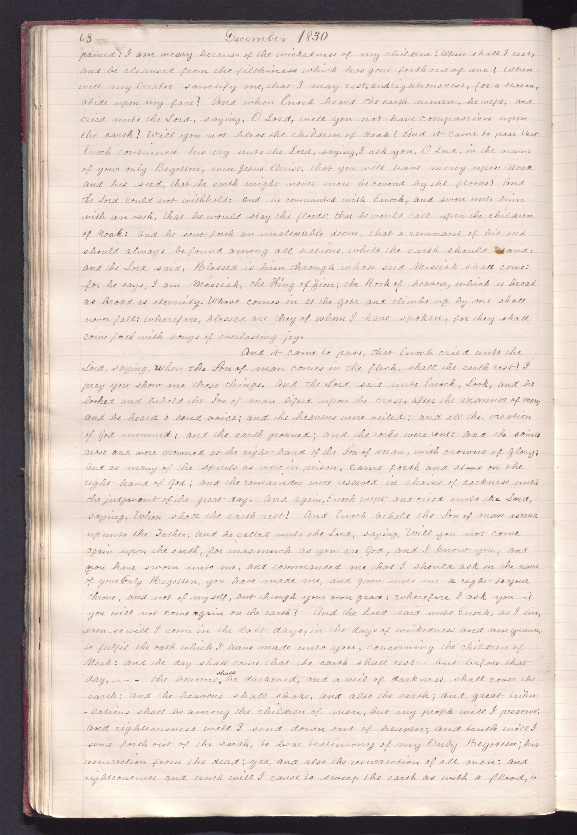 JS, History, 1838–1856, vol. A-2, created 4 Apr.–28 Nov. 1845 and 3–7 Aug. 1858; handwriting of , , , and ; 365 pages, plus seven pages of addenda; CHL. This is a copy of the first volume of a six-volume manuscript history of the church (JS History, 1838–1856, vol. A-1), and covers the period from 23 Dec. 1805 to 30 Aug. 1834. The copy also comprises four other volumes, labeled B-2, C-2, D-2, and E-2, and continues through 19 July 1843. The copy was discontinued 6 Aug. 1856 “by the advice of President ” (JS History, 1838–1856, vol. E-2, p. 83).