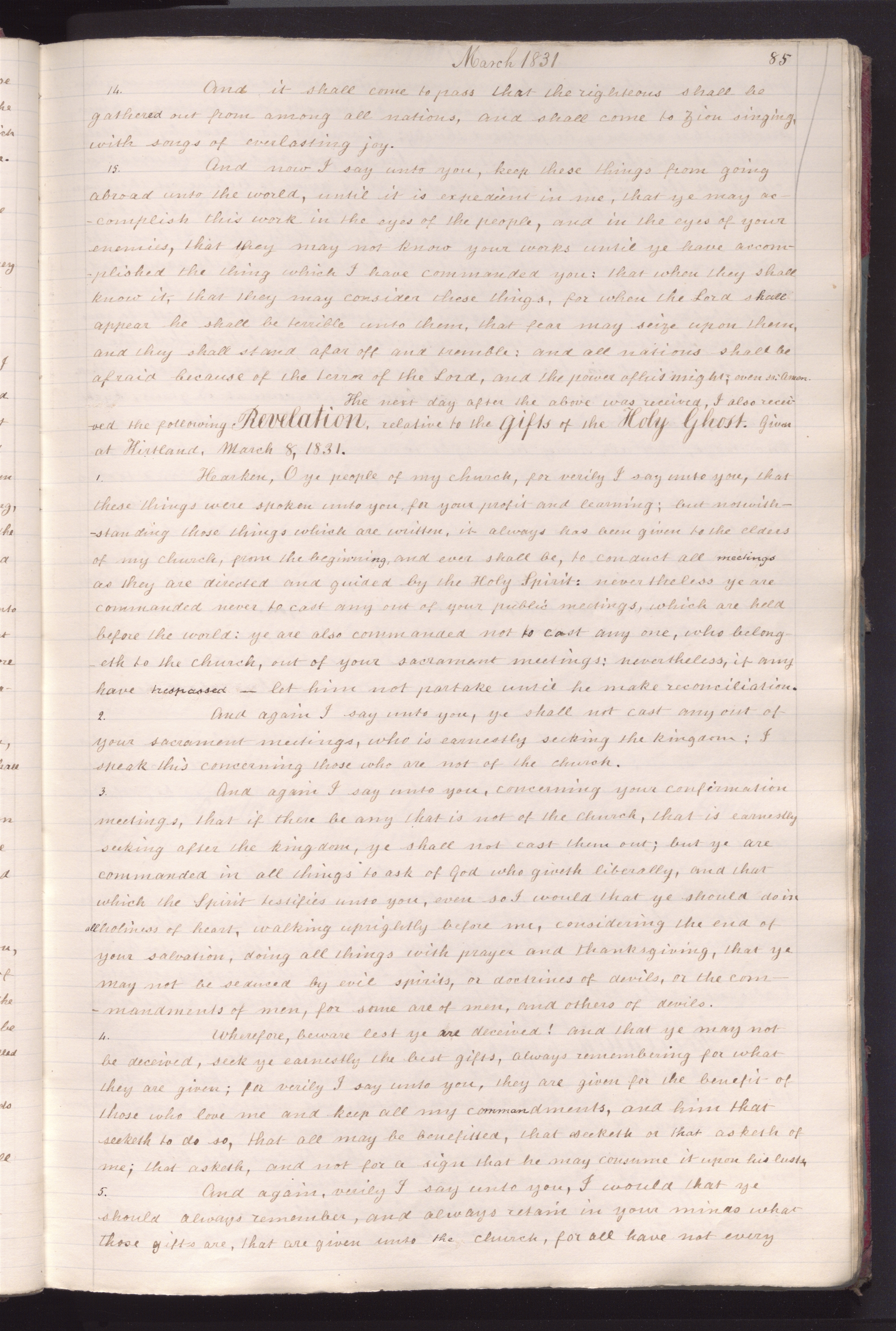 JS, History, 1838–1856, vol. A-2, created 4 Apr.–28 Nov. 1845 and 3–7 Aug. 1858; handwriting of , , , and ; 365 pages, plus seven pages of addenda; CHL. This is a copy of the first volume of a six-volume manuscript history of the church (JS History, 1838–1856, vol. A-1), and covers the period from 23 Dec. 1805 to 30 Aug. 1834. The copy also comprises four other volumes, labeled B-2, C-2, D-2, and E-2, and continues through 19 July 1843. The copy was discontinued 6 Aug. 1856 “by the advice of President ” (JS History, 1838–1856, vol. E-2, p. 83).