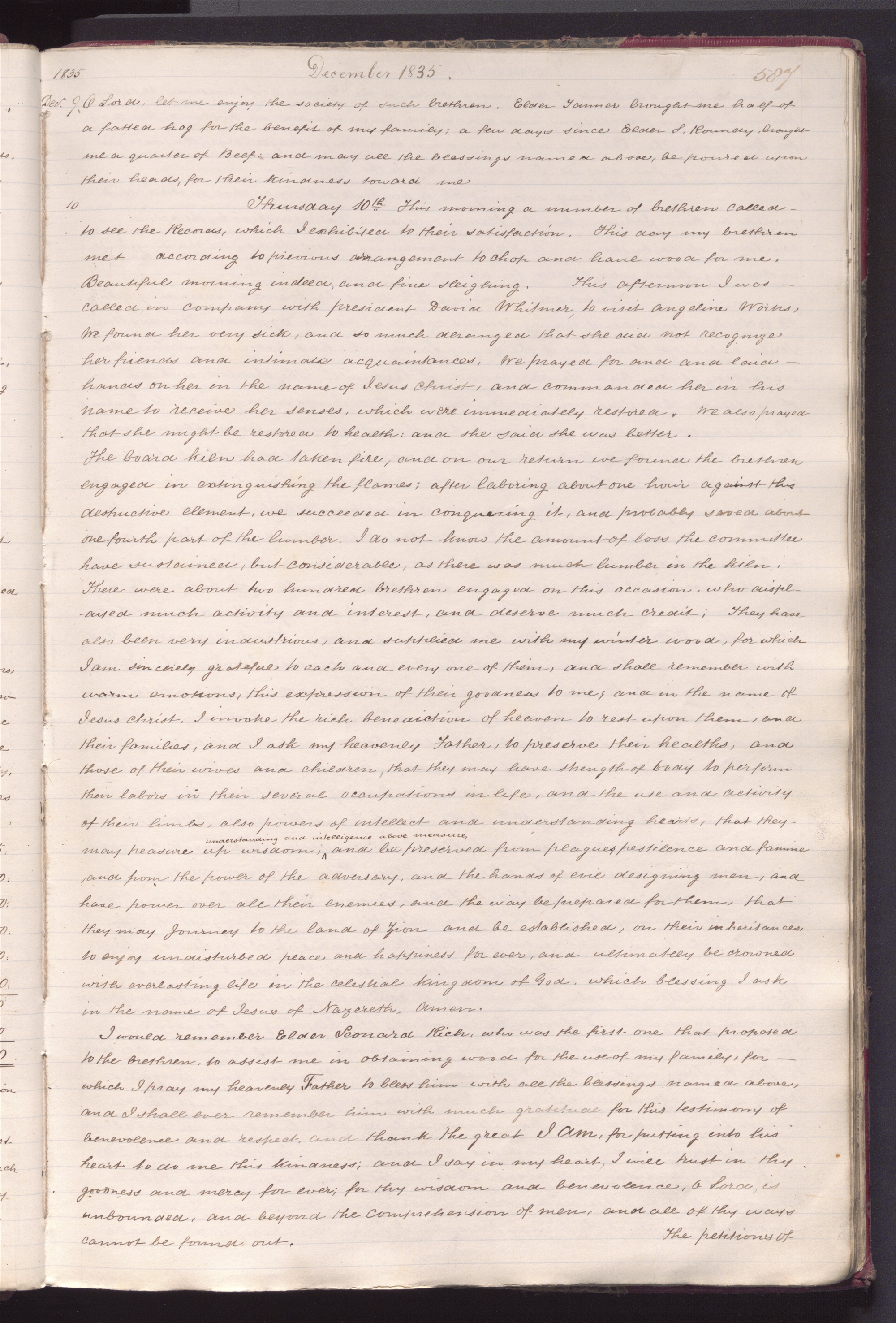 JS, History, 1838–1856, vol. B-2, created 16 May–22 Aug. 1845 and ca. 21 July 1854; handwriting of , , , Jonathan Grimshaw, and ; 296 pages, plus one page of addenda; CHL. This is a copy of the second volume of a six-volume manuscript history of the church (JS History, 1838–1856, vol. B-1), and covers the period from 1 Sept. 1834 to 2 Nov. 1838. The copy also comprises four other volumes, labeled A-2, C-2, D-2, and E-2, and continues through 19 July 1843. The copy was discontinued 6 Aug. 1856 “by the advice of President ” (JS History, 1838–1856, vol. E-2, p. 83).