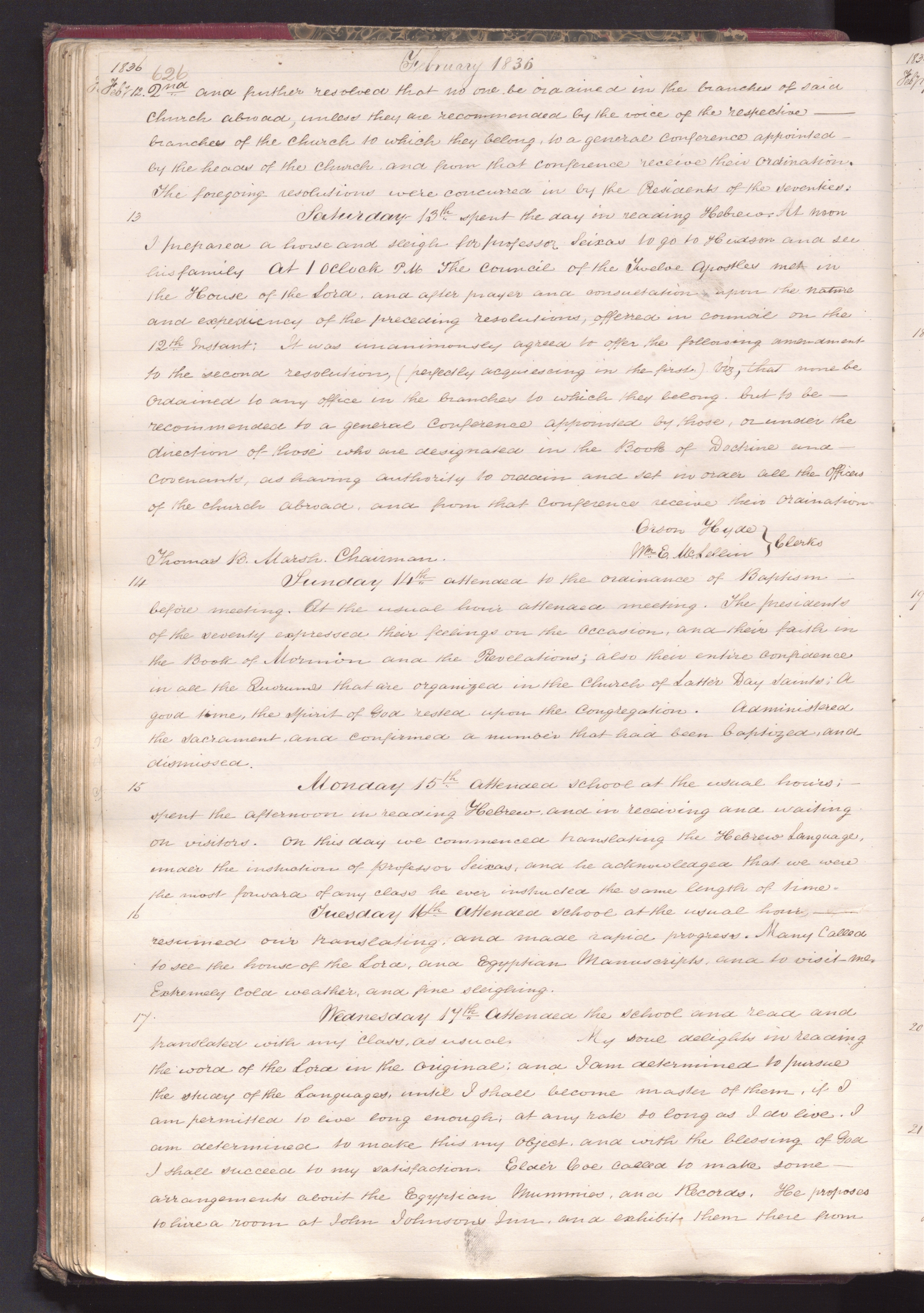 JS, History, 1838–1856, vol. B-2, created 16 May–22 Aug. 1845 and ca. 21 July 1854; handwriting of , , , Jonathan Grimshaw, and ; 296 pages, plus one page of addenda; CHL. This is a copy of the second volume of a six-volume manuscript history of the church (JS History, 1838–1856, vol. B-1), and covers the period from 1 Sept. 1834 to 2 Nov. 1838. The copy also comprises four other volumes, labeled A-2, C-2, D-2, and E-2, and continues through 19 July 1843. The copy was discontinued 6 Aug. 1856 “by the advice of President ” (JS History, 1838–1856, vol. E-2, p. 83).
