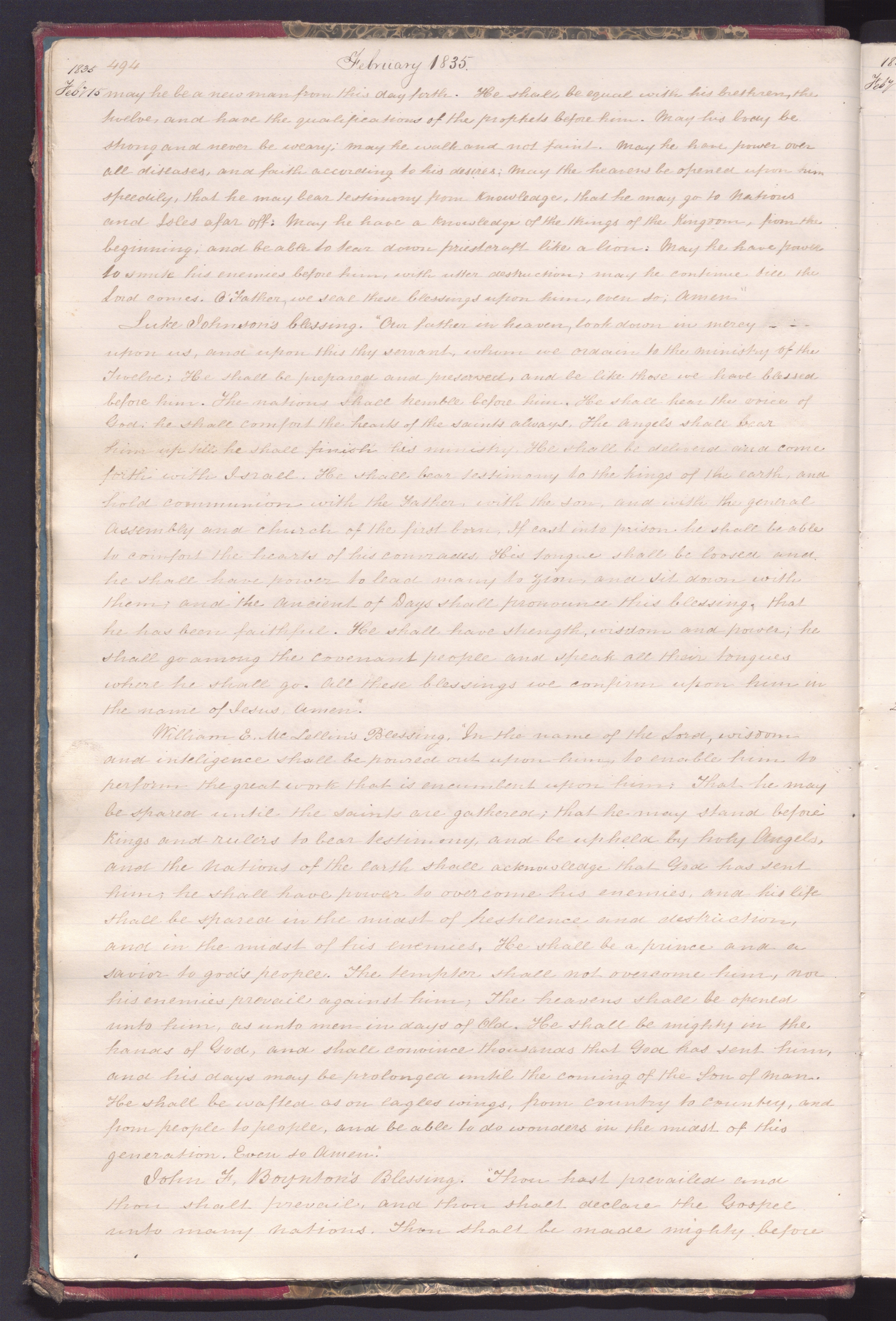 JS, History, 1838–1856, vol. B-2, created 16 May–22 Aug. 1845 and ca. 21 July 1854; handwriting of , , , Jonathan Grimshaw, and ; 296 pages, plus one page of addenda; CHL. This is a copy of the second volume of a six-volume manuscript history of the church (JS History, 1838–1856, vol. B-1), and covers the period from 1 Sept. 1834 to 2 Nov. 1838. The copy also comprises four other volumes, labeled A-2, C-2, D-2, and E-2, and continues through 19 July 1843. The copy was discontinued 6 Aug. 1856 “by the advice of President ” (JS History, 1838–1856, vol. E-2, p. 83).