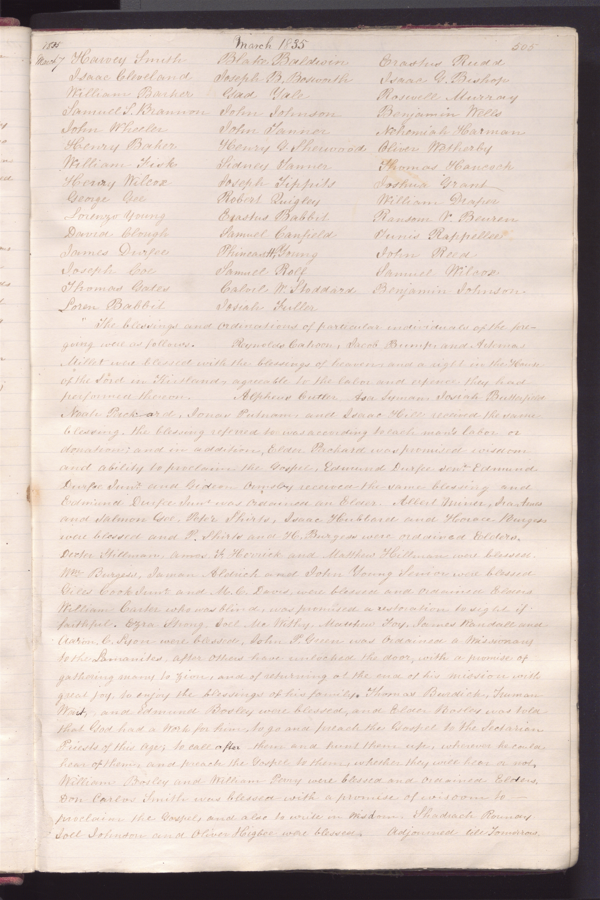 JS, History, 1838–1856, vol. B-2, created 16 May–22 Aug. 1845 and ca. 21 July 1854; handwriting of , , , Jonathan Grimshaw, and ; 296 pages, plus one page of addenda; CHL. This is a copy of the second volume of a six-volume manuscript history of the church (JS History, 1838–1856, vol. B-1), and covers the period from 1 Sept. 1834 to 2 Nov. 1838. The copy also comprises four other volumes, labeled A-2, C-2, D-2, and E-2, and continues through 19 July 1843. The copy was discontinued 6 Aug. 1856 “by the advice of President ” (JS History, 1838–1856, vol. E-2, p. 83).