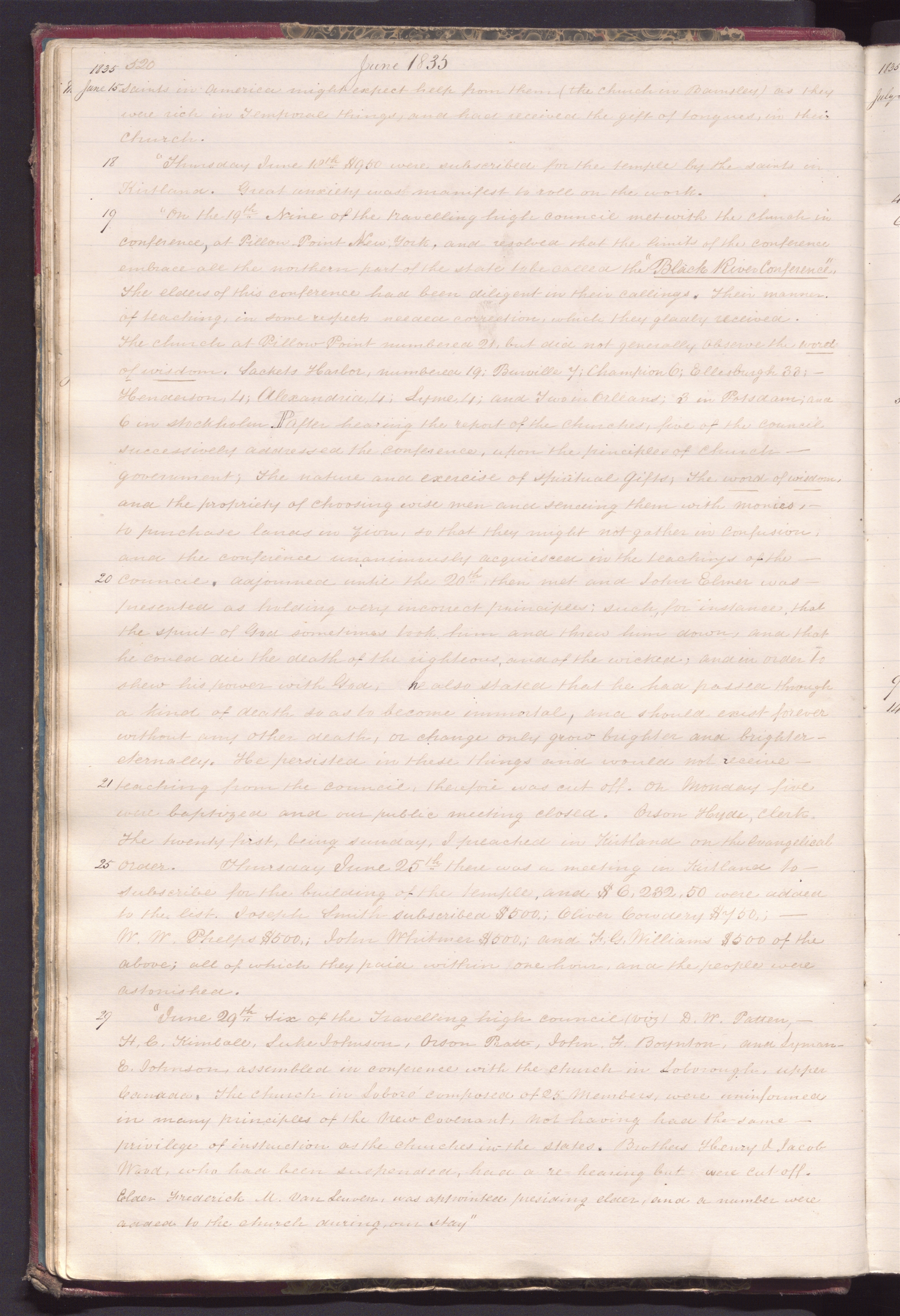 21–25 June 1835 • Sunday–Thursday