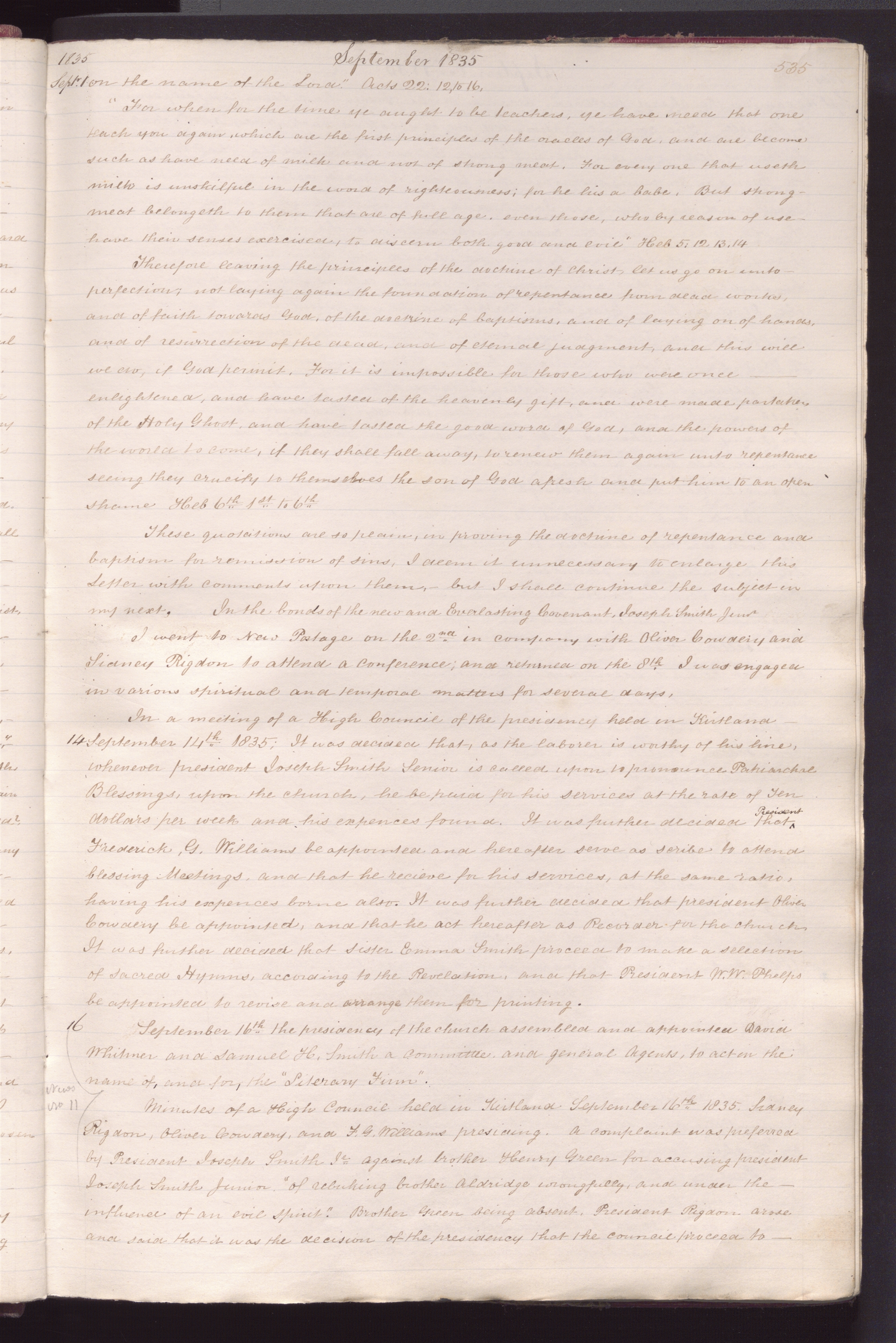 16 September 1835 • Wednesday