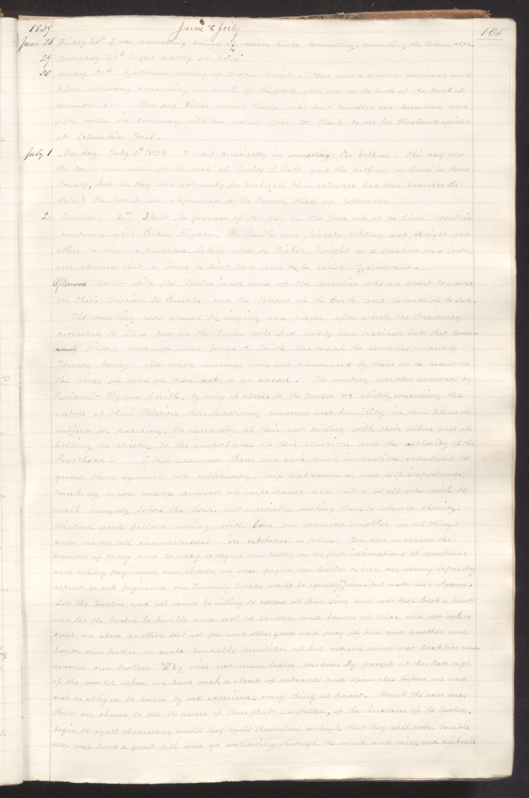 25–30 March 1839 • Monday–Saturday