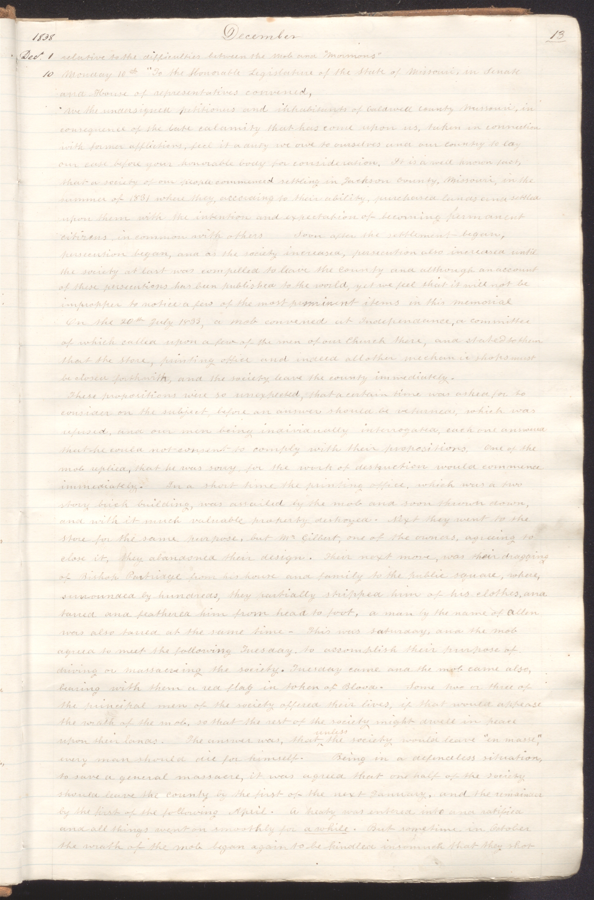 13 December 1838 • Thursday