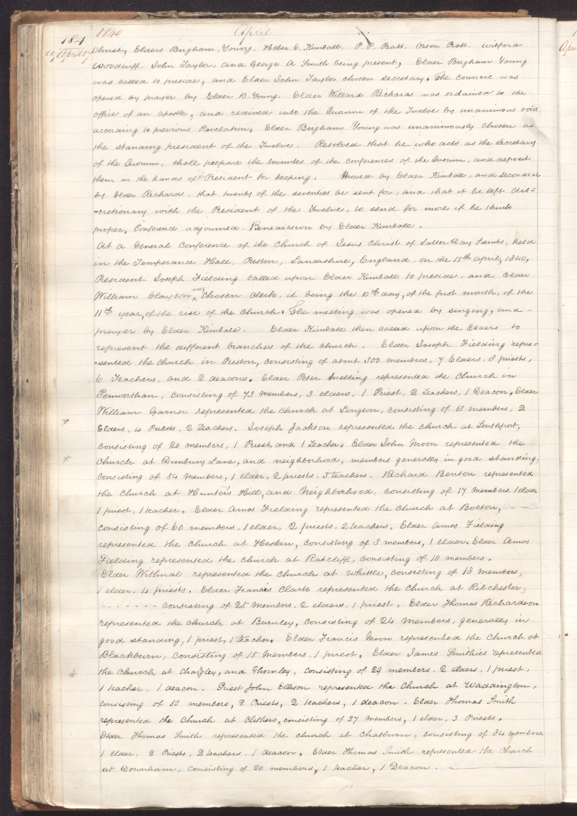 JS, History, 1838–1856, vol. C-2, created 2 Aug. 1845–3 Feb. 1846, 8 Nov. 1854–2 Oct. 1855, and 10 Mar. 1862; handwriting of , , , Jonathan Grimshaw, and Robert L. Campbell; 520 pages, plus eight pages of addenda; CHL. This is a copy of the third volume of a six-volume manuscript history of the church (JS History, 1838–1856, vol. C-1), and covers the period from 2 Nov. 1838 to 31 July 1842. The copy also comprises four other volumes, labeled A-2, B-2, D-2, and E-2, and continues through 19 July 1843. The copy was discontinued 6 Aug. 1856 “by the advice of President ” (JS History, 1838–1856, vol. E-2, p. 83).