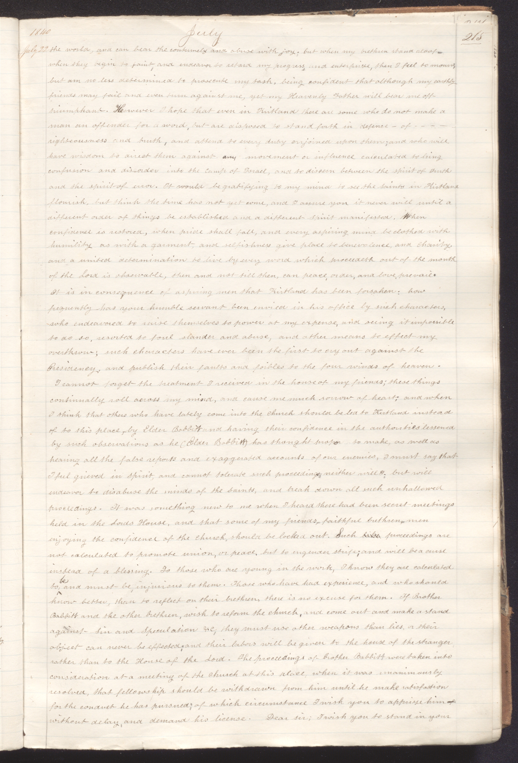 JS, History, 1838–1856, vol. C-2, created 2 Aug. 1845–3 Feb. 1846, 8 Nov. 1854–2 Oct. 1855, and 10 Mar. 1862; handwriting of , , , Jonathan Grimshaw, and Robert L. Campbell; 520 pages, plus eight pages of addenda; CHL. This is a copy of the third volume of a six-volume manuscript history of the church (JS History, 1838–1856, vol. C-1), and covers the period from 2 Nov. 1838 to 31 July 1842. The copy also comprises four other volumes, labeled A-2, B-2, D-2, and E-2, and continues through 19 July 1843. The copy was discontinued 6 Aug. 1856 “by the advice of President ” (JS History, 1838–1856, vol. E-2, p. 83).