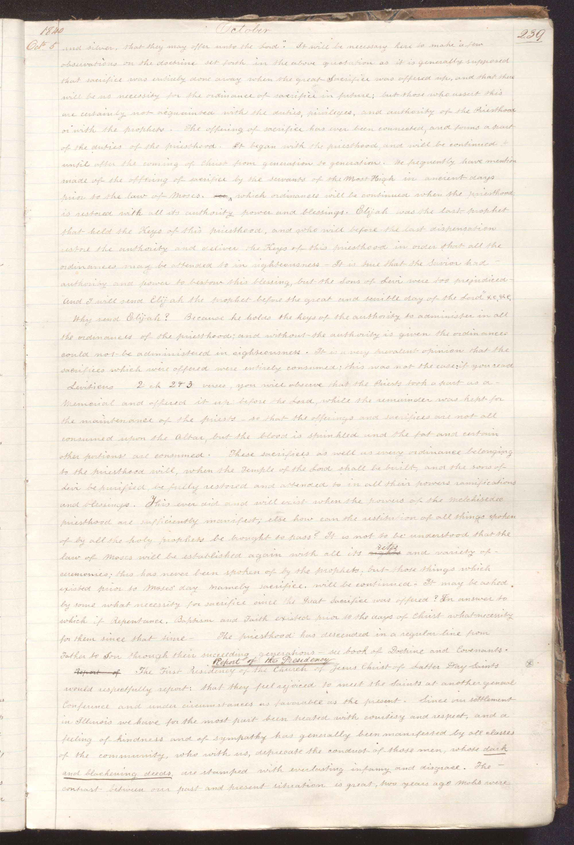 JS, History, 1838–1856, vol. C-2, created 2 Aug. 1845–3 Feb. 1846, 8 Nov. 1854–2 Oct. 1855, and 10 Mar. 1862; handwriting of , , , Jonathan Grimshaw, and Robert L. Campbell; 520 pages, plus eight pages of addenda; CHL. This is a copy of the third volume of a six-volume manuscript history of the church (JS History, 1838–1856, vol. C-1), and covers the period from 2 Nov. 1838 to 31 July 1842. The copy also comprises four other volumes, labeled A-2, B-2, D-2, and E-2, and continues through 19 July 1843. The copy was discontinued 6 Aug. 1856 “by the advice of President ” (JS History, 1838–1856, vol. E-2, p. 83).