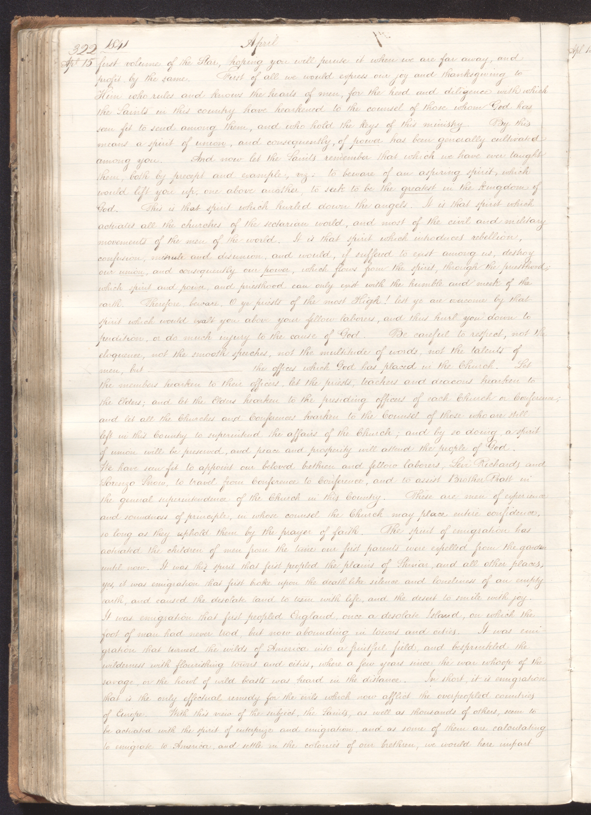 JS, History, 1838–1856, vol. C-2, created 2 Aug. 1845–3 Feb. 1846, 8 Nov. 1854–2 Oct. 1855, and 10 Mar. 1862; handwriting of , , , Jonathan Grimshaw, and Robert L. Campbell; 520 pages, plus eight pages of addenda; CHL. This is a copy of the third volume of a six-volume manuscript history of the church (JS History, 1838–1856, vol. C-1), and covers the period from 2 Nov. 1838 to 31 July 1842. The copy also comprises four other volumes, labeled A-2, B-2, D-2, and E-2, and continues through 19 July 1843. The copy was discontinued 6 Aug. 1856 “by the advice of President ” (JS History, 1838–1856, vol. E-2, p. 83).