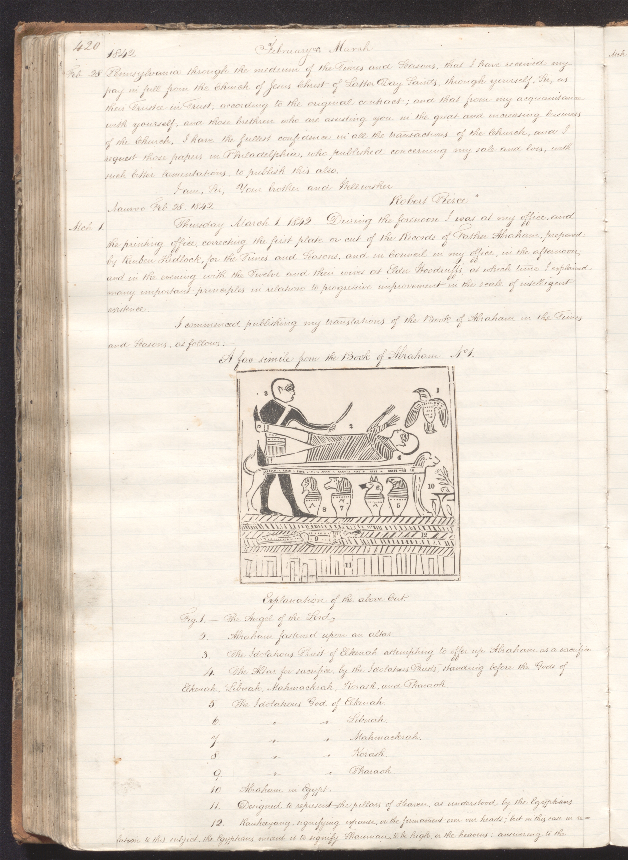 JS, History, 1838–1856, vol. C-2, created 2 Aug. 1845–3 Feb. 1846, 8 Nov. 1854–2 Oct. 1855, and 10 Mar. 1862; handwriting of , , , Jonathan Grimshaw, and Robert L. Campbell; 520 pages, plus eight pages of addenda; CHL. This is a copy of the third volume of a six-volume manuscript history of the church (JS History, 1838–1856, vol. C-1), and covers the period from 2 Nov. 1838 to 31 July 1842. The copy also comprises four other volumes, labeled A-2, B-2, D-2, and E-2, and continues through 19 July 1843. The copy was discontinued 6 Aug. 1856 “by the advice of President ” (JS History, 1838–1856, vol. E-2, p. 83).