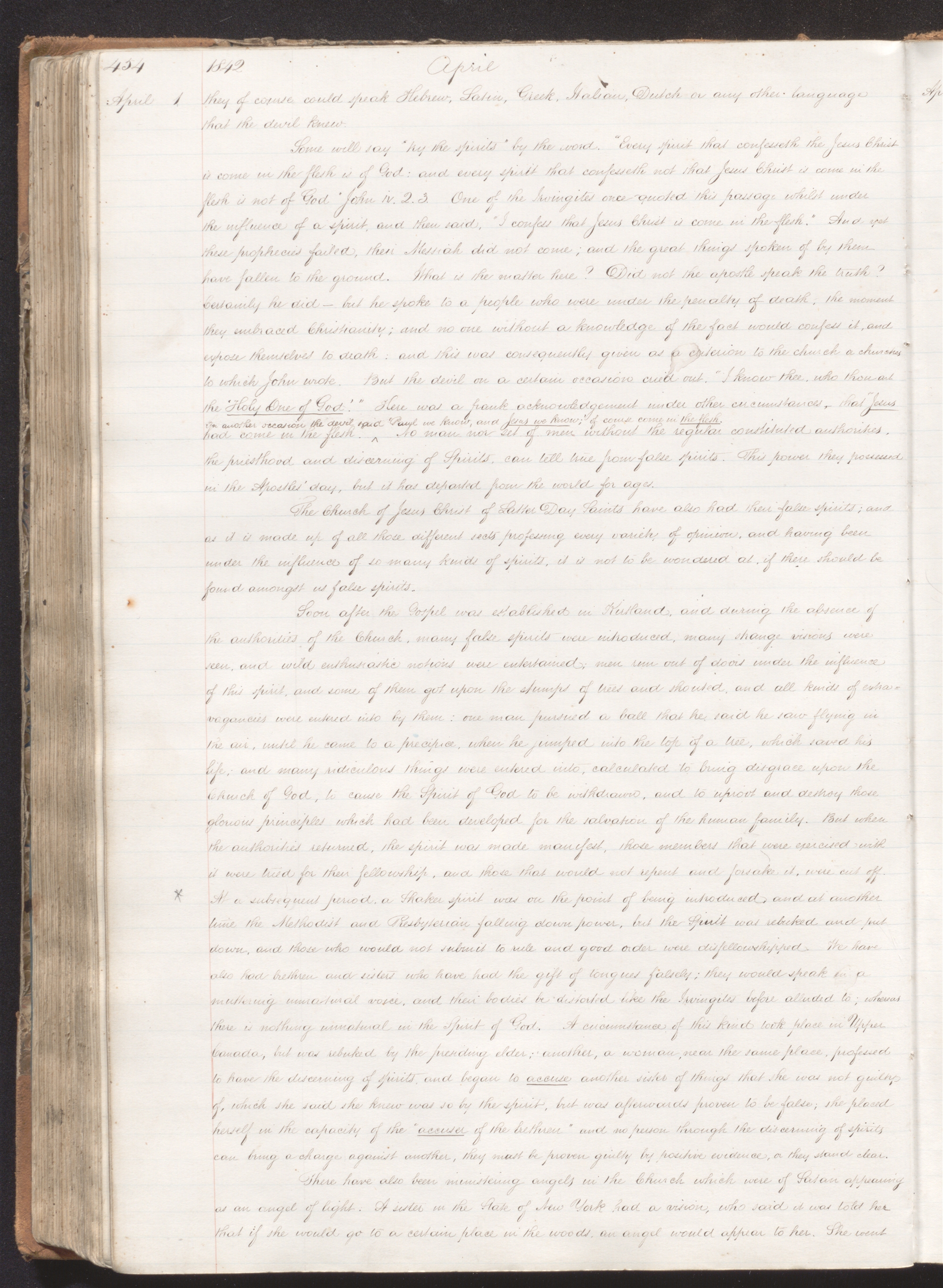 JS, History, 1838–1856, vol. C-2, created 2 Aug. 1845–3 Feb. 1846, 8 Nov. 1854–2 Oct. 1855, and 10 Mar. 1862; handwriting of , , , Jonathan Grimshaw, and Robert L. Campbell; 520 pages, plus eight pages of addenda; CHL. This is a copy of the third volume of a six-volume manuscript history of the church (JS History, 1838–1856, vol. C-1), and covers the period from 2 Nov. 1838 to 31 July 1842. The copy also comprises four other volumes, labeled A-2, B-2, D-2, and E-2, and continues through 19 July 1843. The copy was discontinued 6 Aug. 1856 “by the advice of President ” (JS History, 1838–1856, vol. E-2, p. 83).