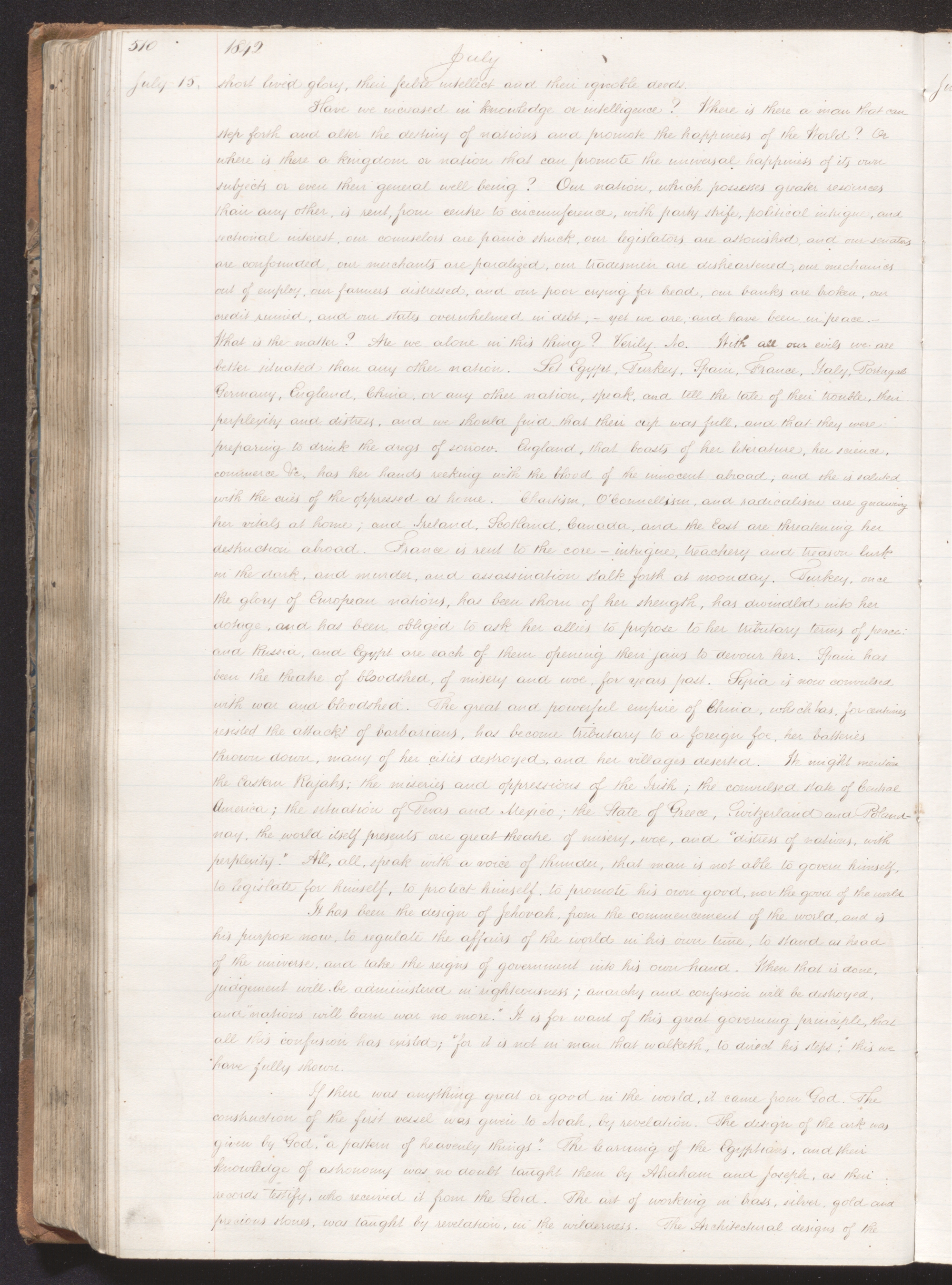 JS, History, 1838–1856, vol. C-2, created 2 Aug. 1845–3 Feb. 1846, 8 Nov. 1854–2 Oct. 1855, and 10 Mar. 1862; handwriting of , , , Jonathan Grimshaw, and Robert L. Campbell; 520 pages, plus eight pages of addenda; CHL. This is a copy of the third volume of a six-volume manuscript history of the church (JS History, 1838–1856, vol. C-1), and covers the period from 2 Nov. 1838 to 31 July 1842. The copy also comprises four other volumes, labeled A-2, B-2, D-2, and E-2, and continues through 19 July 1843. The copy was discontinued 6 Aug. 1856 “by the advice of President ” (JS History, 1838–1856, vol. E-2, p. 83).