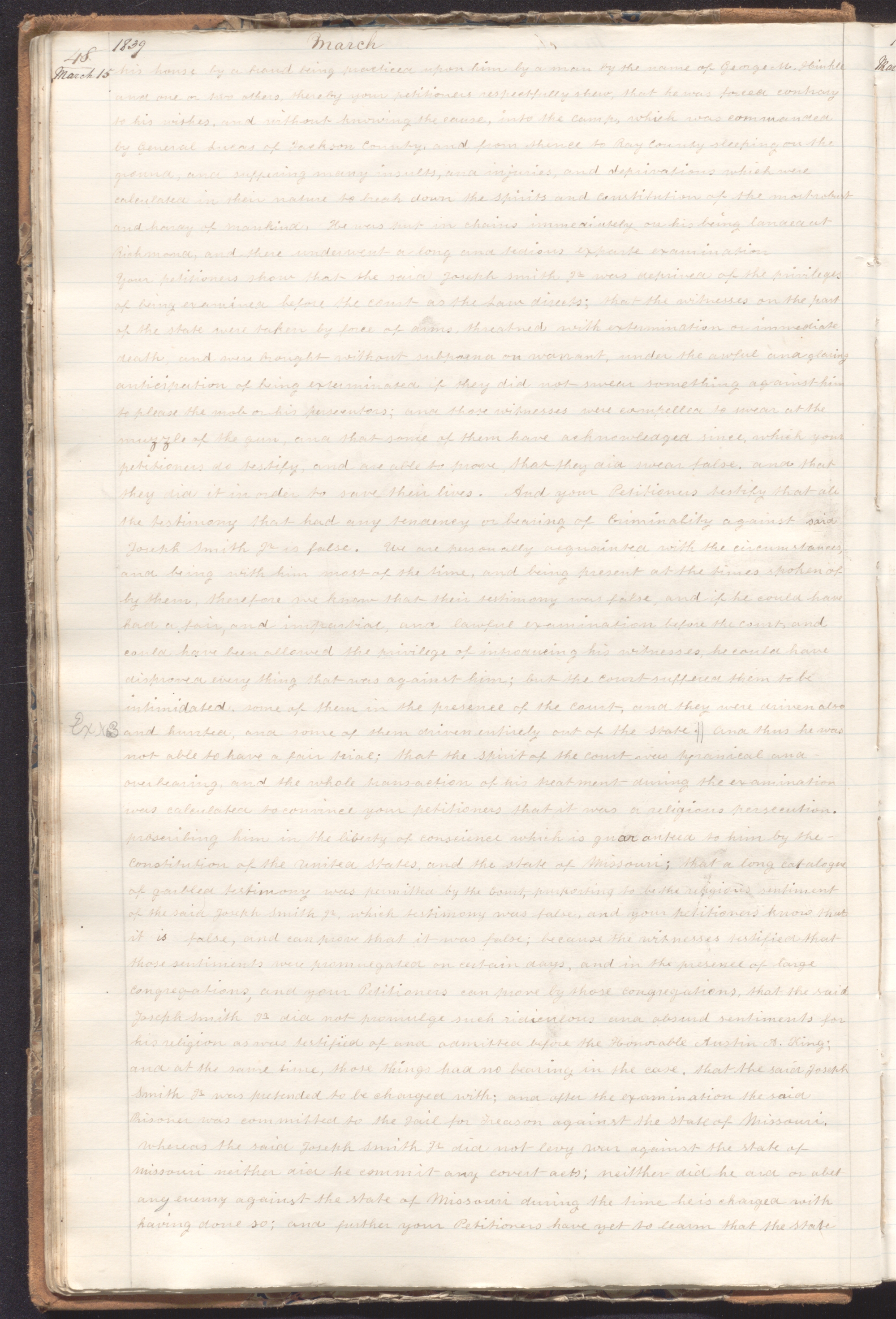 JS, History, 1838–1856, vol. C-2, created 2 Aug. 1845–3 Feb. 1846, 8 Nov. 1854–2 Oct. 1855, and 10 Mar. 1862; handwriting of , , , Jonathan Grimshaw, and Robert L. Campbell; 520 pages, plus eight pages of addenda; CHL. This is a copy of the third volume of a six-volume manuscript history of the church (JS History, 1838–1856, vol. C-1), and covers the period from 2 Nov. 1838 to 31 July 1842. The copy also comprises four other volumes, labeled A-2, B-2, D-2, and E-2, and continues through 19 July 1843. The copy was discontinued 6 Aug. 1856 “by the advice of President ” (JS History, 1838–1856, vol. E-2, p. 83).