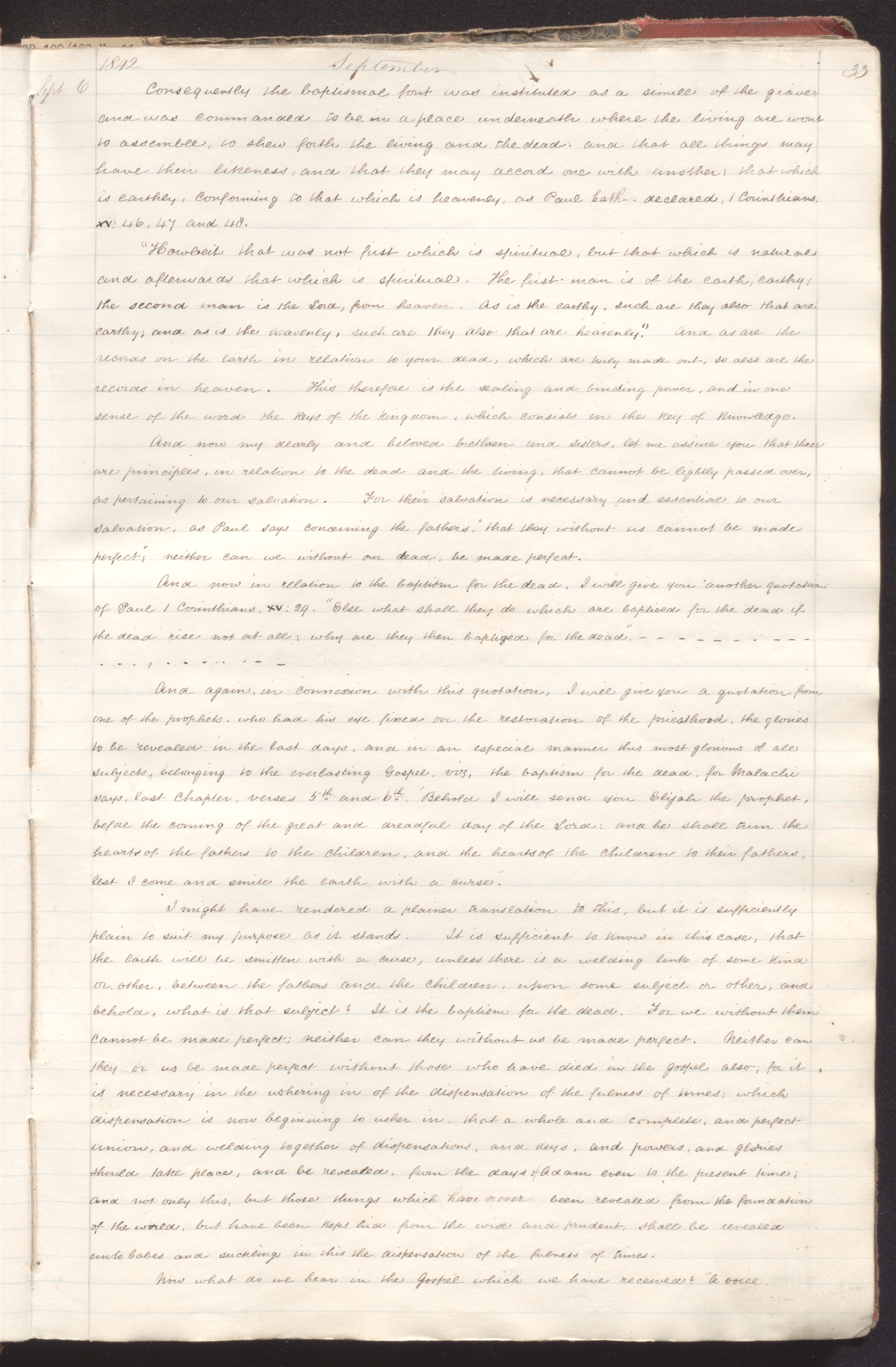 JS, History, 1838–1856, vol. D-2, created ca. 24 Nov. 1845–2 Feb. 1846, 17 Oct. 1855–11 July 1856, and 1 June 1866; handwriting of , , , and Joseph F. Smith; 248 pages, plus nine pages of addenda; CHL. This is a copy of the fourth volume of a six-volume manuscript history of the church (JS History, 1838–1856, vol. D-1), and covers the period from 1 Aug. 1842 to 30 June 1843. The copy also comprises four other volumes, labeled A-2, B-2, C-2, and E-2, and continues through 19 July 1843. The copy was discontinued 6 Aug. 1856 “by the advice of President ” (JS History, 1838–1856, vol. E-2, p. 83).