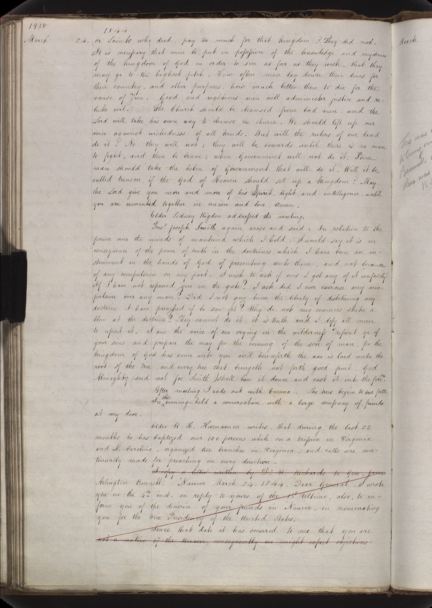 Willard Richards, Nauvoo, IL, to James Arlington Bennet, Arlington House, Long Island, NY, 24 Mar. 1844, Willard Richards, Papers, CHL.