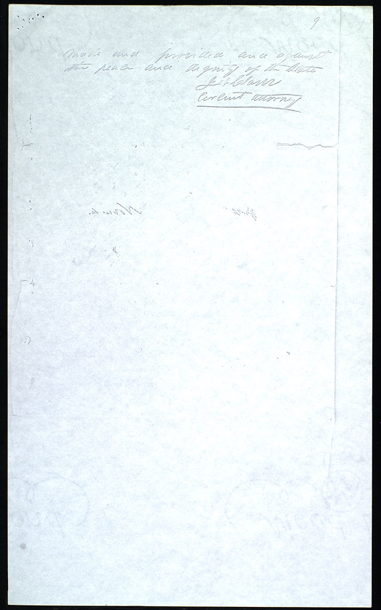 Indictment, [Honey Creek Township], Daviess Co., MO, ca. 10 Apr. 1839, State of MO v. Gates et al. for Treason (Daviess Co., MO, Circuit Court 1839); handwriting of ; docket and notations by with probable signature of Robert P. Peniston Sr., [Honey Creek Township, Daviess Co., MO], [ca. 10 Apr. 1839]; eleven pages; partial manuscript in Historical Department, Nineteenth-Century Legal Documents Collection, CHL. Complete photocopy in Max H. Parkin, Collected Missouri Court Documents, CHL.