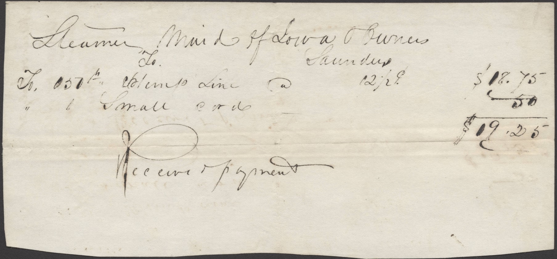 Invoice and Receipt, Maid of Iowa to Sanders, circa 20 July 1844