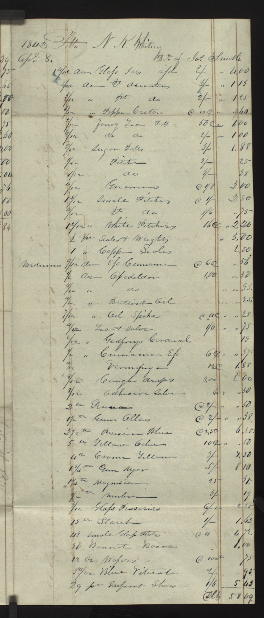 | 8/12 | Adhesive salve | 6. | " " 50 | |