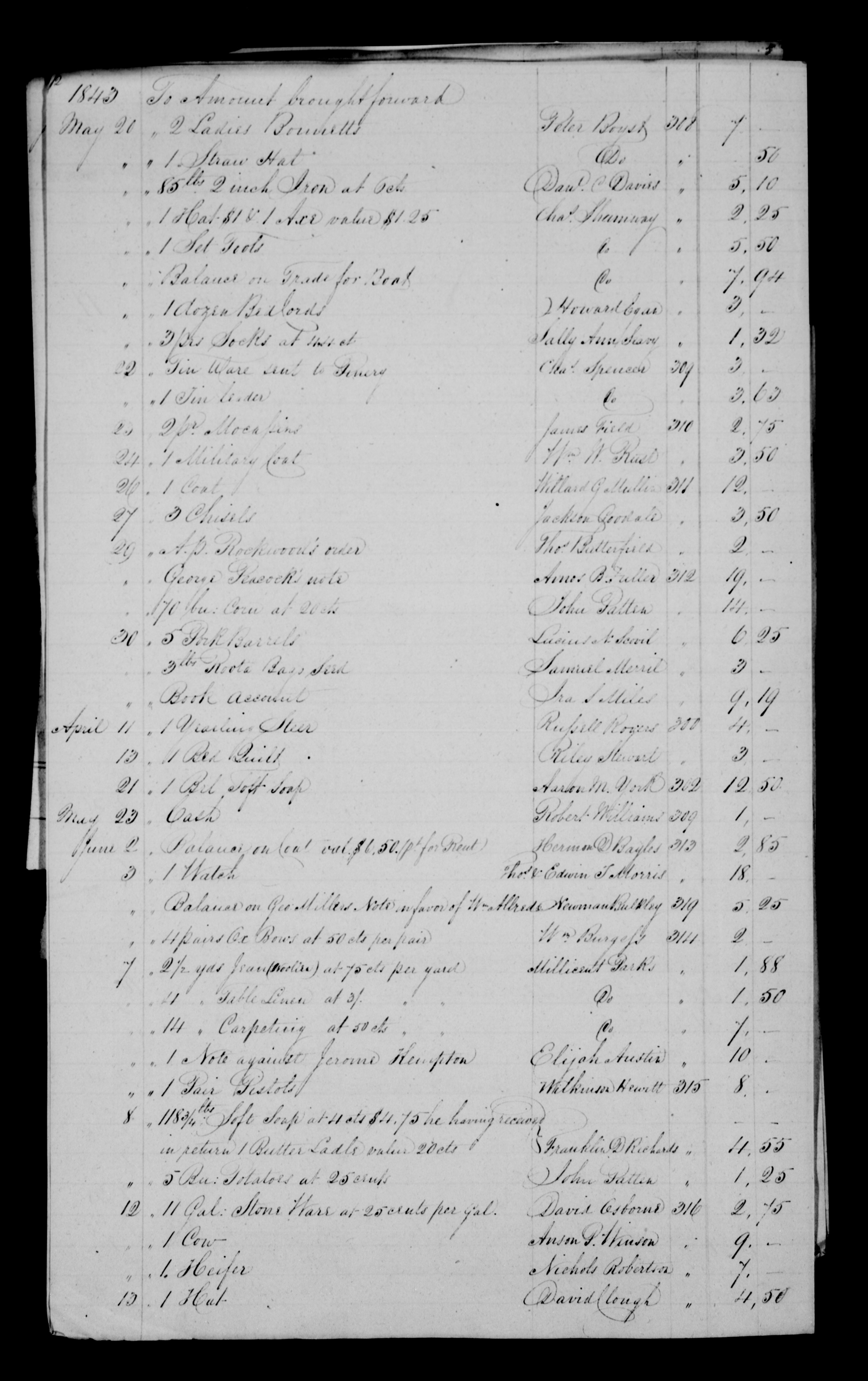 | May 20 | [To] 2 Ladies Bonnetts | Peter Boyst | 308 | 7.00 |