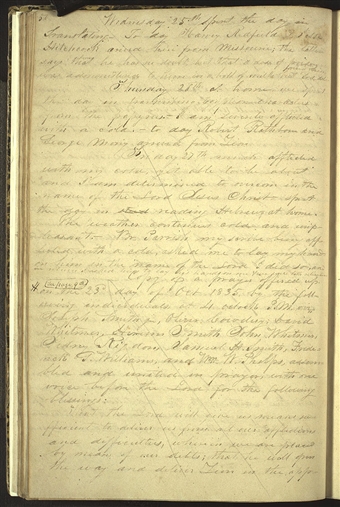 See also the earlier journal entry for 23 October 1835. The assembled group constituted the full membership of the church presidencies from both Ohio and Missouri, except for Joseph Smith Sr., for whom his son Samuel Smith may have been standing in.