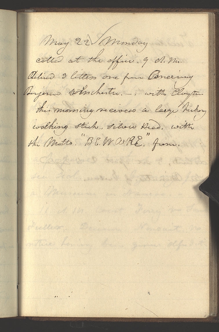The letter about Winchester was from Sybella Armstrong. Winchester, a missionary, writer, and church leader in the Philadelphia area, had been silenced and counseled to leave Philadelphia by church leaders the previous year after he was disciplined for disobeying instructions from the First Presidency. Winchester remained in the area, however, where he continued to create controversy. In her letter to JS, Armstrong accused Winchester of having slandered her character in Philadelphia and New York. “Please submit this to the Corim [Quorum] of the Twelve,” Armstrong concluded, “and may God dirrect you in adminstrg [administering] Justice to the oppressed.” According to William Clayton, JS “handed the letter to Dr [Willard] Richards saying the Twelve ought to silence Winchester.” (“Notice,” Times and Seasons, 16 May 1842, 3:798; “Notice,” Times and Seasons, 15 July 1842, 3:862; Sybella Armstrong, Philadelphia, PA, to JS, Nauvoo, IL, 1 May 1843, JS Collection, CHL; Clayton, Journal, 22 May 1843; Whittaker, “East of Nauvoo,” 58–59; see also JS, Journal, 27 May 1843.)