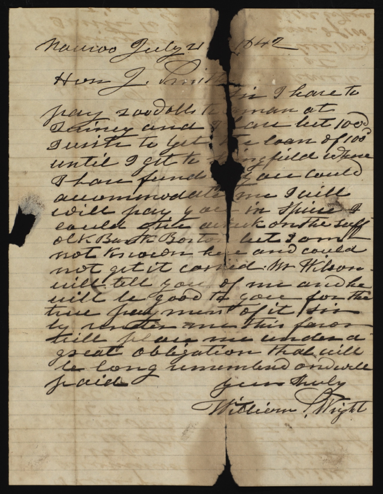 A man named William S. Wright lived in McDonough County, Illinois, in the early 1840s. This Wright, who was apparently not a church member, does not appear to have had prior contact with JS, although it is possible that he authored the featured letter. (1840 U.S. Census, McDonough Co., IL, 206; Land Patents for William S. Wright, McDonough Co., IL, nos. 12588, 16378, General Land Office Records, Bureau of Land Management, U.S. Department of the Interior.)