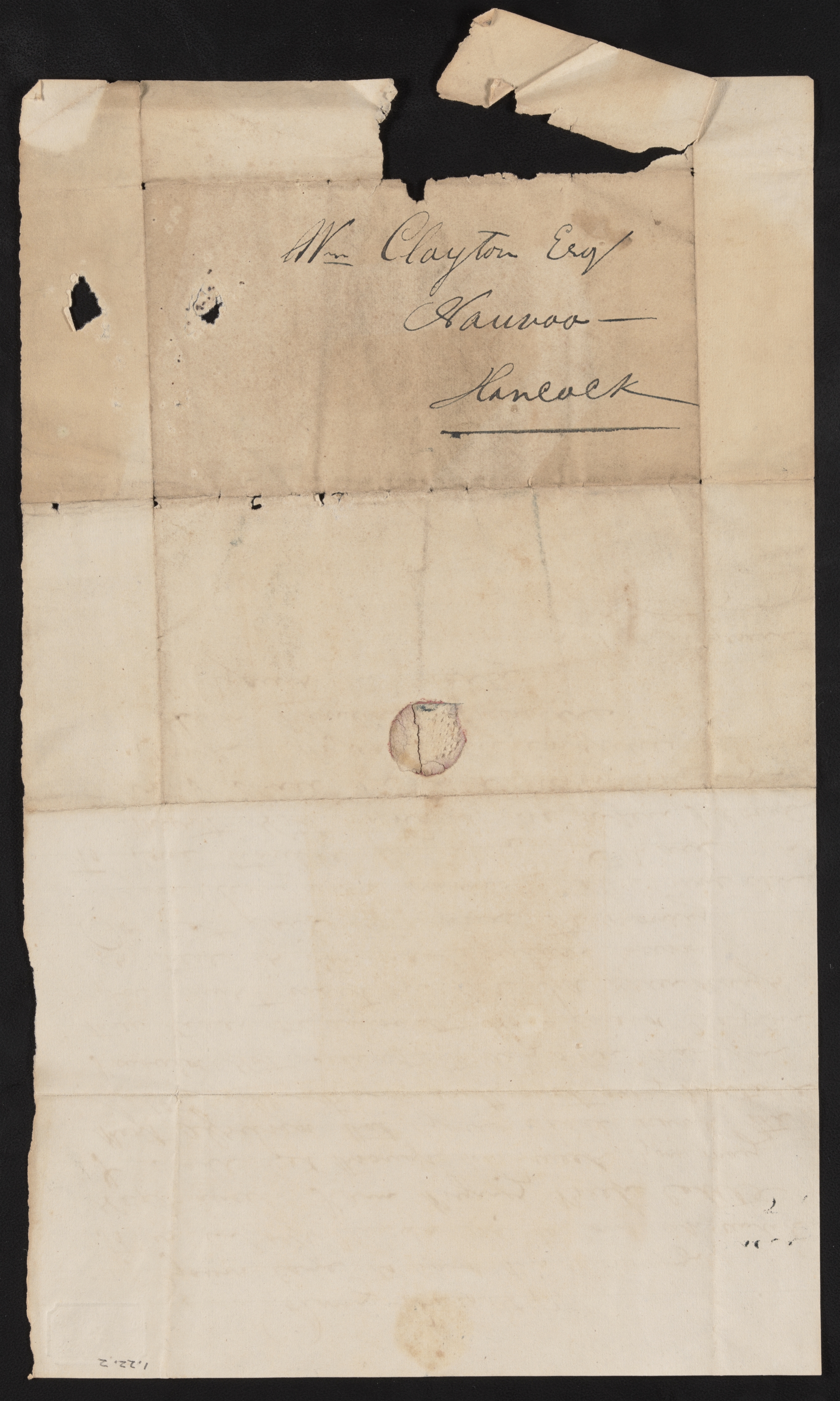 Solomon Lawrence, Letter, , Adams Co., IL, to , , Hancock Co., IL, 16 Nov. 1843; handwriting and signature presumably of Solomon Lawrence; one page; Newel K. Whitney, Papers, BYU. Includes address and archival marking.
