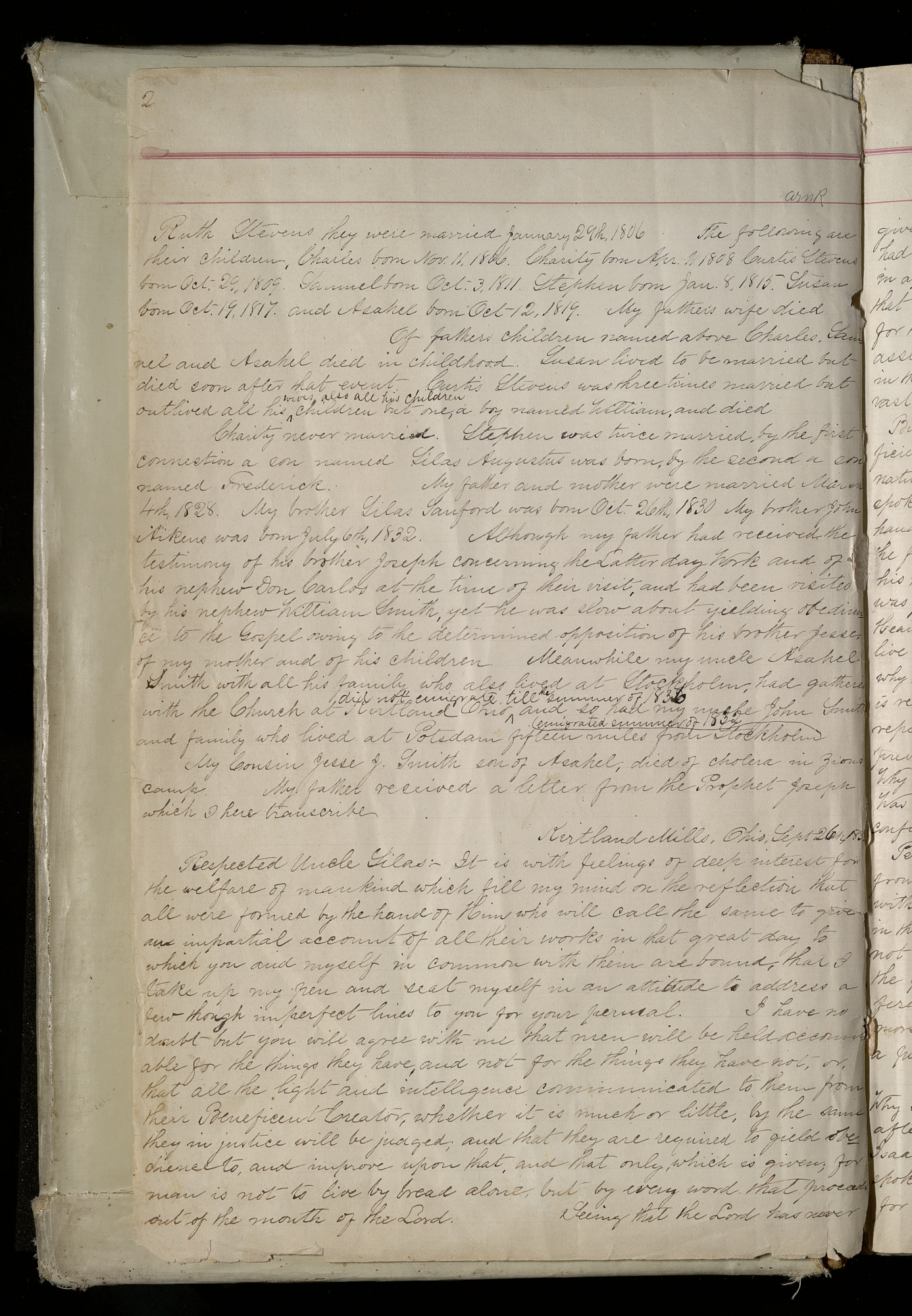 Smith, Hyrum. Letter, Kirtland, OH, to Elias Smith, East Stockholm, NY, 27 Feb. 1836. CHL. MS 4950.