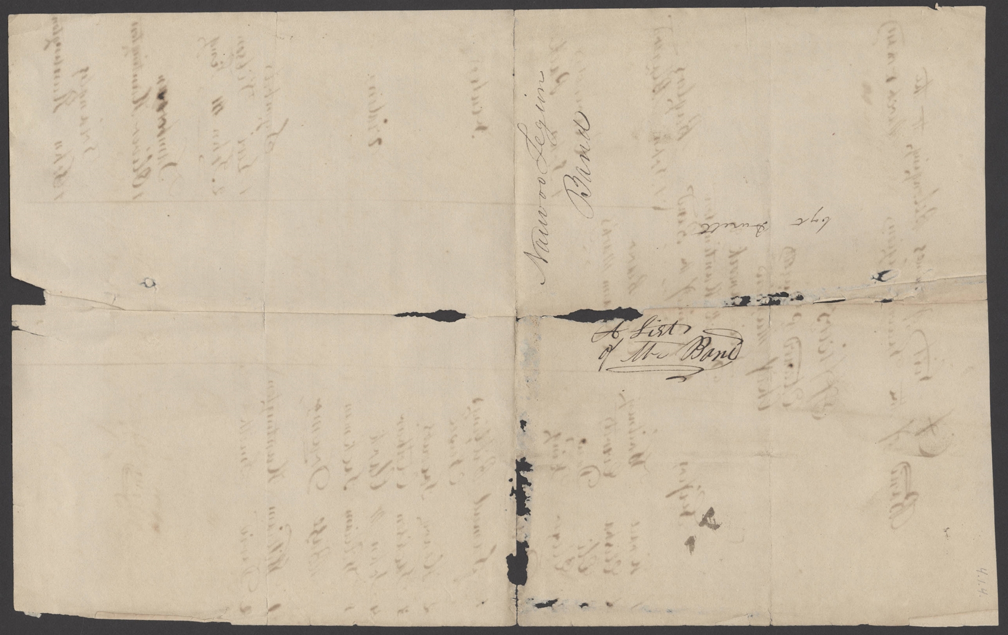 List of Band Members, [, Hancock Co., IL], 8 Mar. 1841; handwriting of ; docket in handwriting of ; notation in handwriting of ; docket in handwriting of .one page; Newel K. Whitney, Papers, BYU. Includes archival notation.