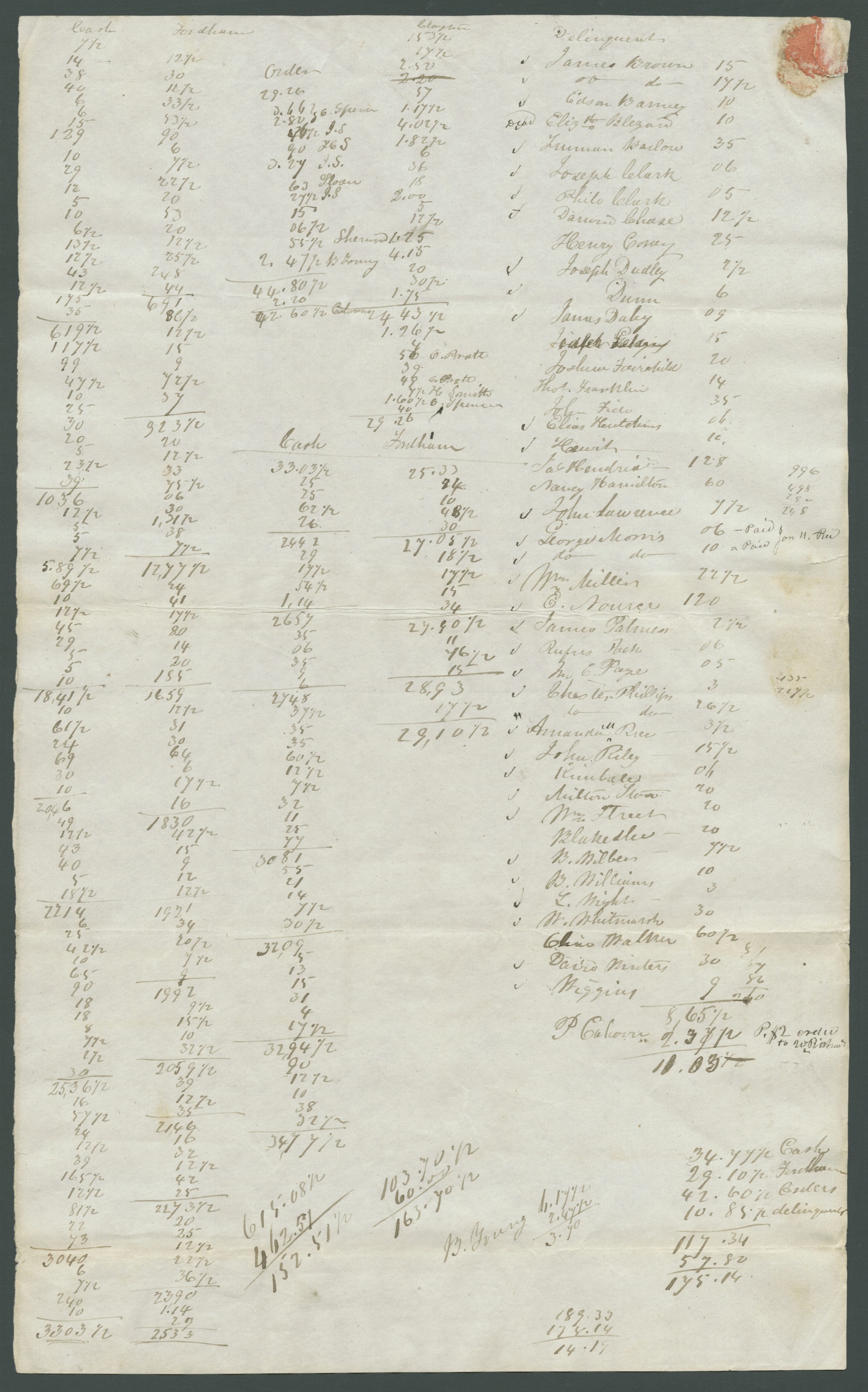 [], List of Delinquent Taxes, Nauvoo second ward for 1842, [, Hancock Co., IL], ca. Dec. 1843. Version copied [ca. Dec. 1843] in Notations about Elijah Fordham's Returns to Nauvoo City Treasurer, circa Dec. 1843; handwriting of ; one page; Nauvoo, IL, Records, 1841–1845, CHL.